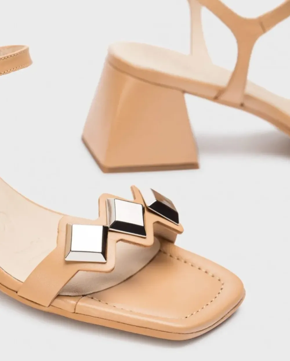 Sandalias En Piel Lisa Arena. Las Sandalias Marie Son Un Clásico Reinventado, Con Una Tira Frontal Adornada Con Apliques Metálicos Cuadradosy Una Fina Tira Trasera Que Se Adapta Al Tobillo. La Suela Desarrollada Con La Tecnología Wondersfly™ Que Aporta Una Extrema Ligereza Al Modelo, ¡Que No Te Vas A Querer Quitar!