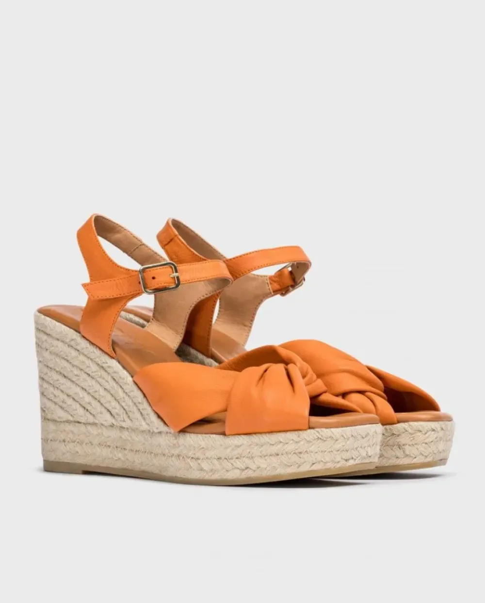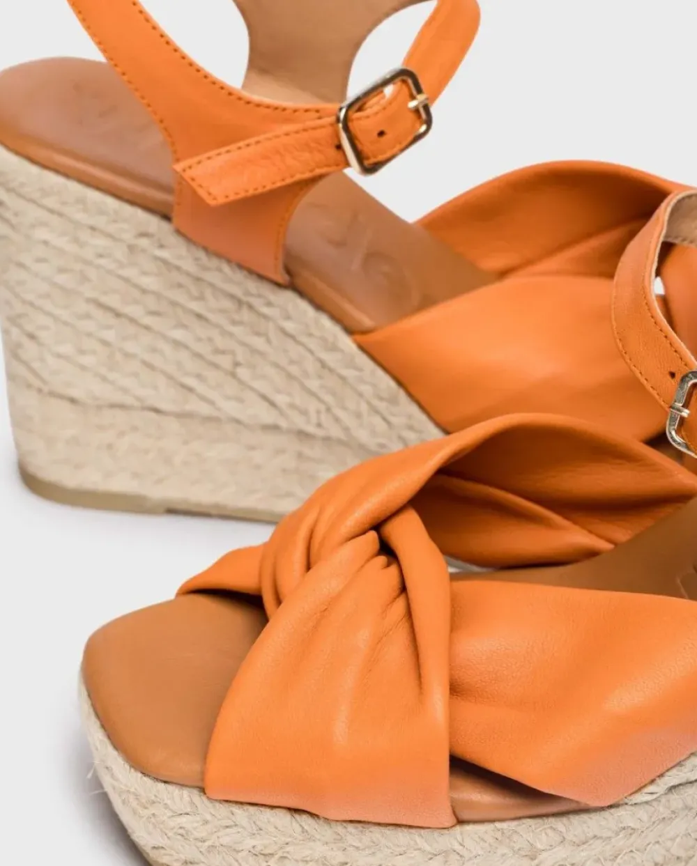 Alpargatas Con Cuña De Yute Trenzado Elaborada En Piel De Color Naranja. Sujección En Forma De Lazo Al Empeine. Cierre De Pulsera Con Hebilla Ajustable. Fabricadas En España Con Materiales Sostenibles, La Fibra De Yute Es 100% Biodegradable Y Reciclable, Inocuo Para El Medio Ambiente. Un Modelo Ideal Para Tus Looks De Verano.