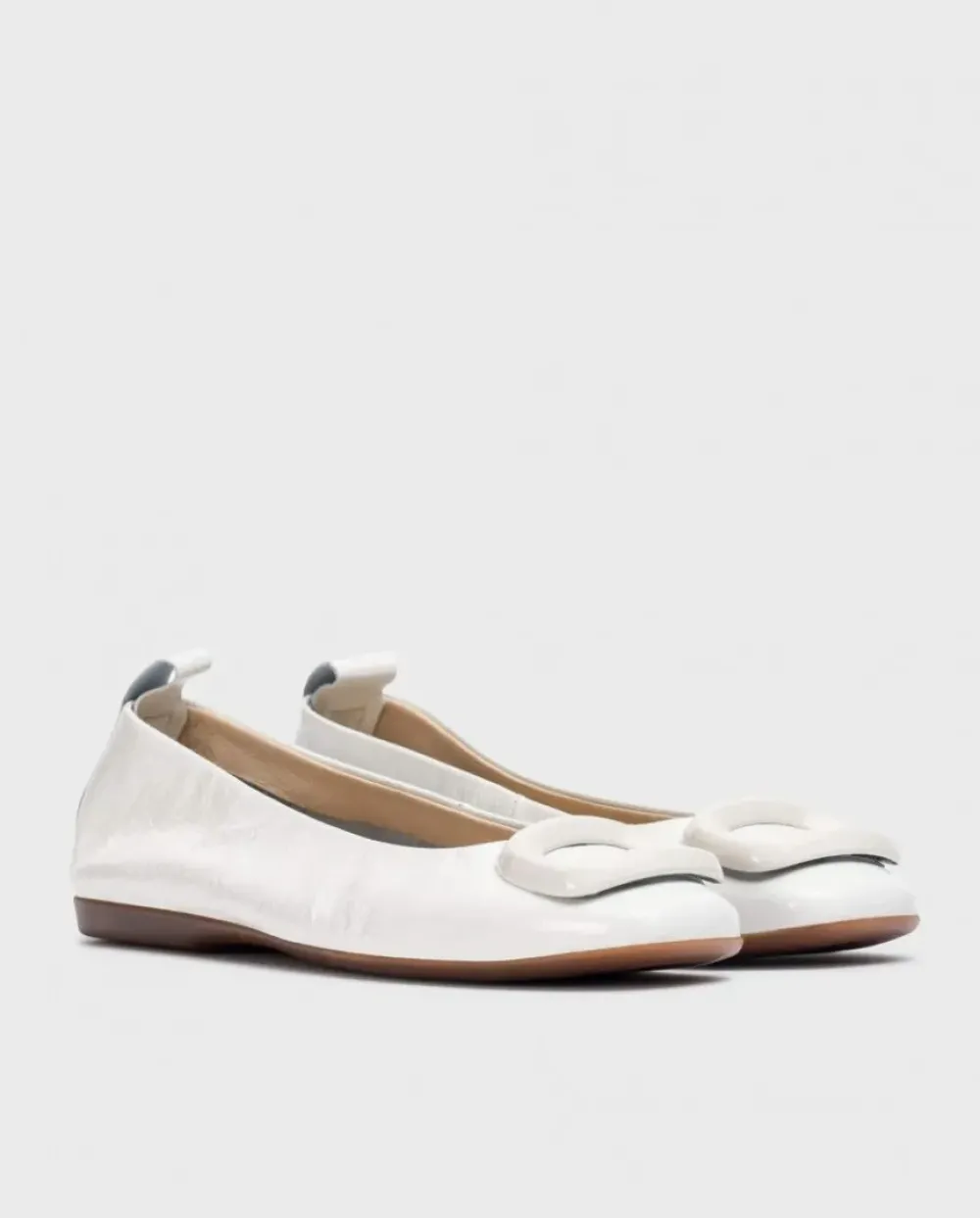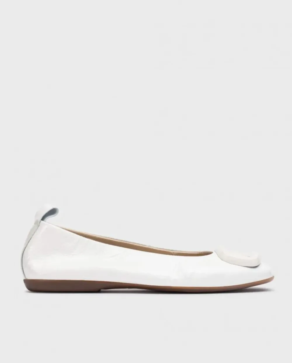 Bailarina Plana De Piel Charol Arrugado En Color Blanco. Un Modelo Elegante Que Destaca Por Su Sofisticado Detalle De Una Gran Hebilla A Juego, Acompañado De Una Tira Trasera Trasera Para Ayudar Al Calce Y Puntera Cuadrada. Su Plantilla Memory Gel Proporcionando Un Extra De Comodidad, Asegurando Confort Durante El Día. Añade Elegancia A Tus Pasos Con Nuestra Bailarina Berna