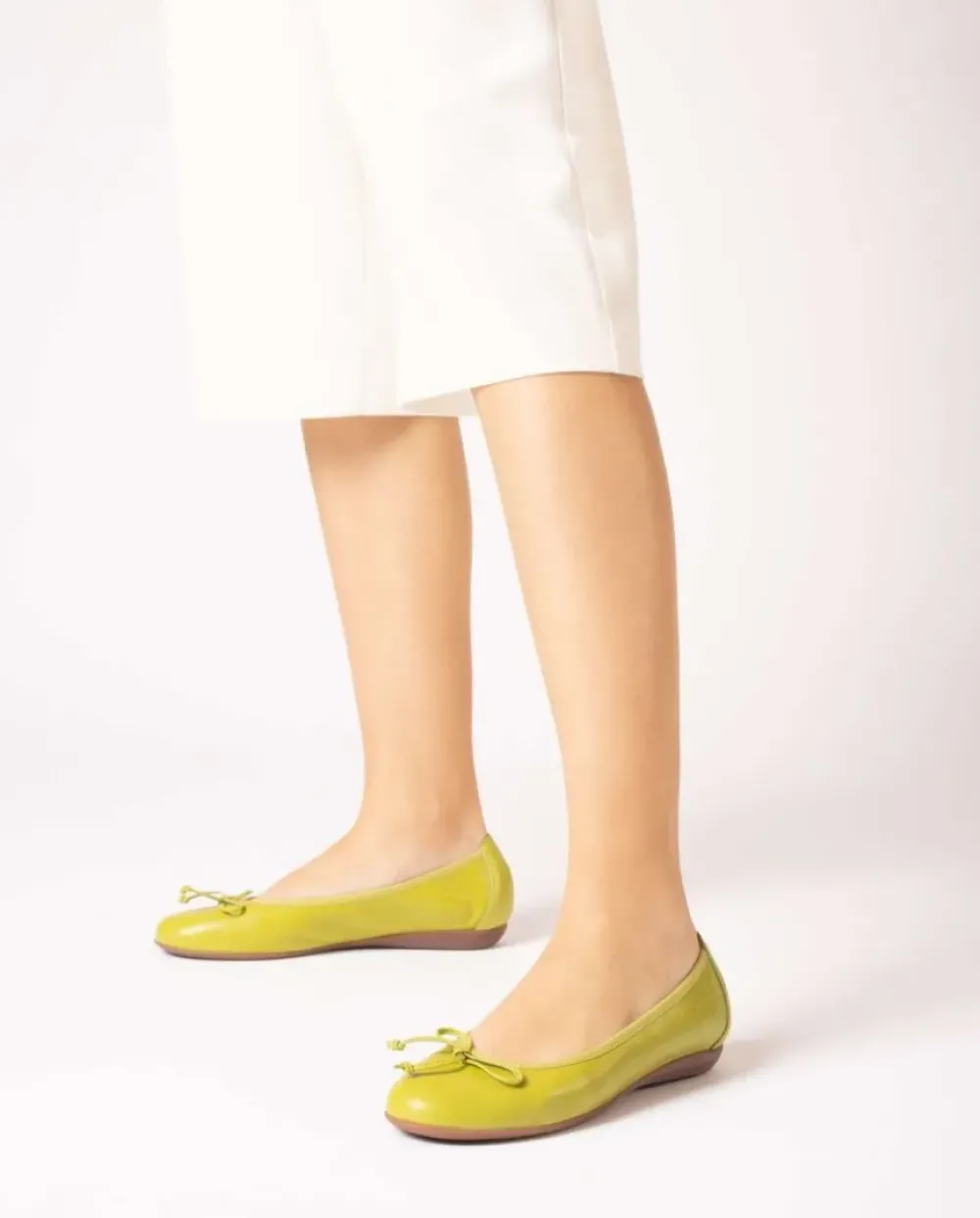 Bailarina Plana En Piel Verde. El Modelo Bo Casual Y Atemporal Tiene La Punta Redonda Y Detalle De Lazo En El Empiene. Plantilla Interna Memorygel Que Amotigua Tu Pisada. ¡Consíguelo Ahora Para Experimentar La Moda Y La Comodidad En Cada Paso!