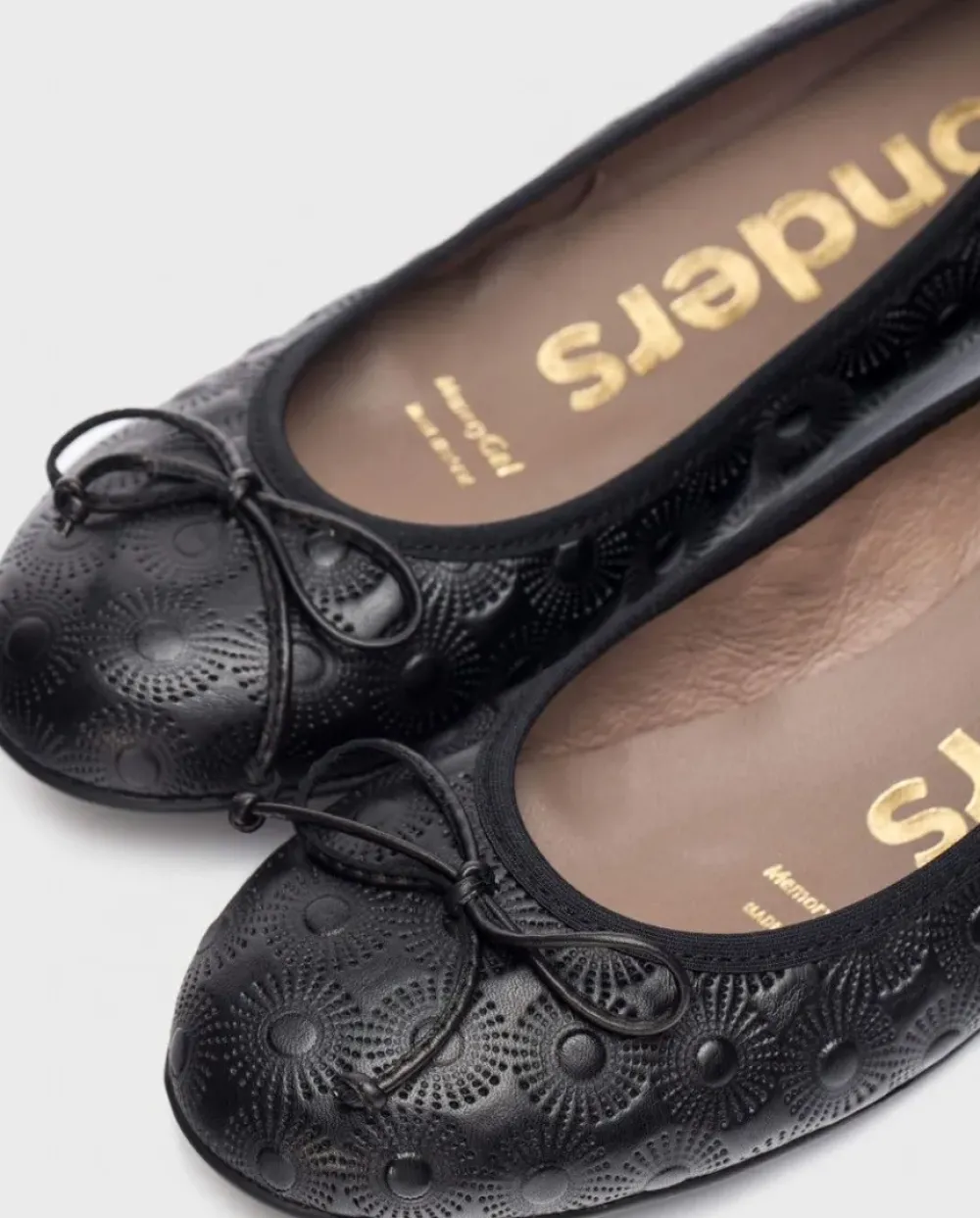 Bailarina Lace, Confeccionada En Piel Texturizada De Color Negro Con Fascinantes Formas Geométricas. Este Modelo Es Un Básico Versátil Perfecto Para Tu Día A Día, Con Un Encantador Detalle De Lazo En La Parte Del Antifaz.