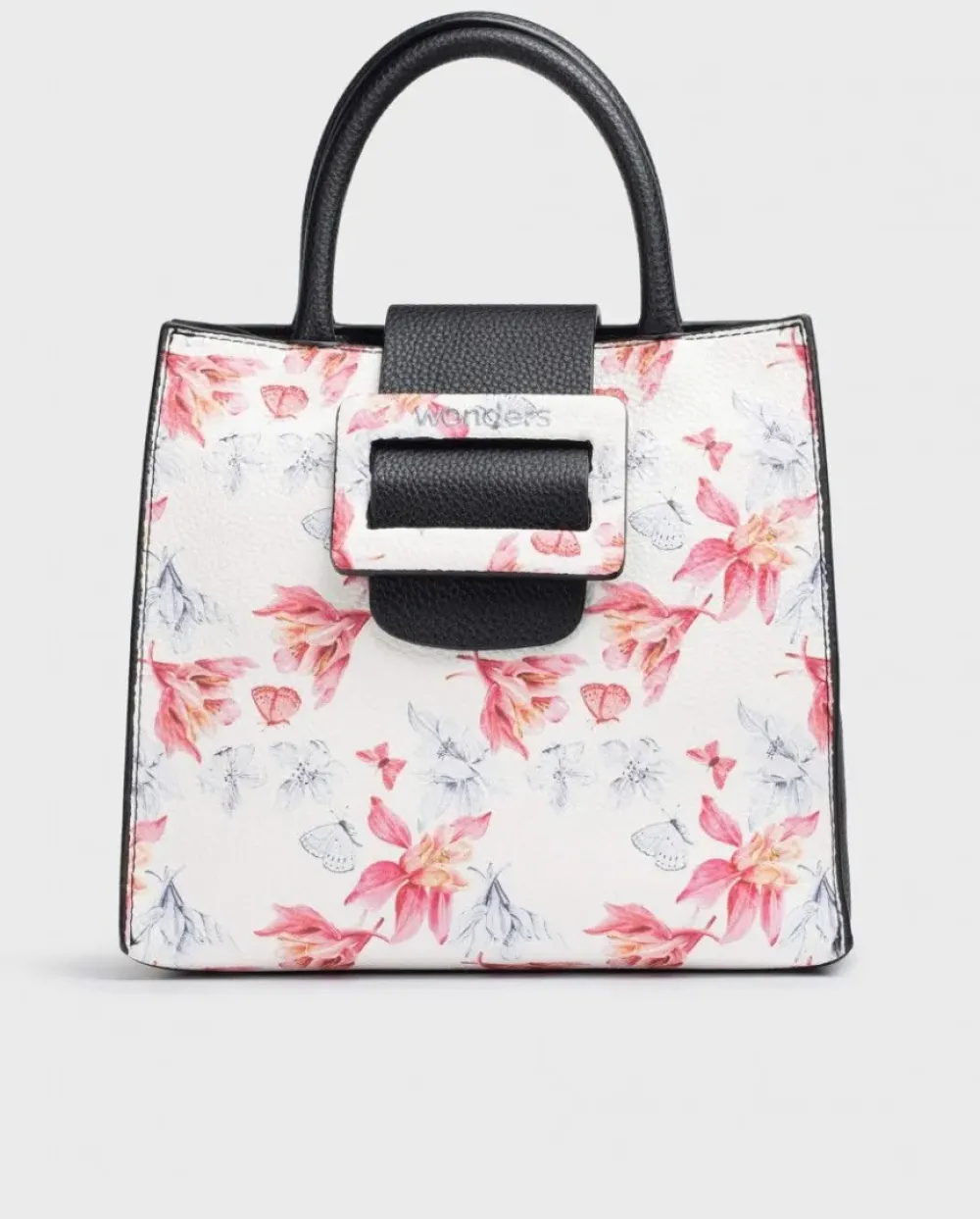 Bolso City Con Estampado Floral. Tamaño Mediano Con Doble Asa, De Mano Y Al Hombro Extraíble Con Bolsillo De Cremallera Interna Y Cierre Mediante Botón Igmantado Con Adorno De Hebilla. Un Complemento Perfecto Para Tus Zapatos Wonders. Tamaño 21X21X9