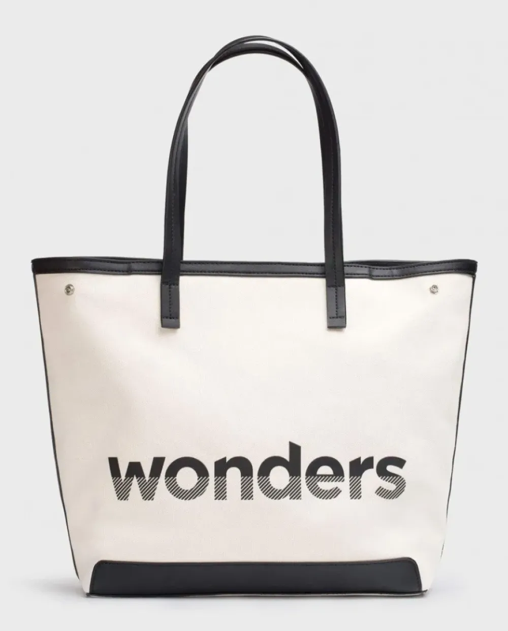 Bolso Shopper Fabricado En Algodón Combinado En Dos Colores . Tamaño Grande Con Asa Al Hombro Y Serigrafía De Marca Central. Detalle De Botón Lateral, Bolsillo De Cremallera Interna Y Cierre Mediante Botón Igmantado. Un Complemento Perfecto Para Tus Zapatos Wonders. Tamaño 32X32X3Cm