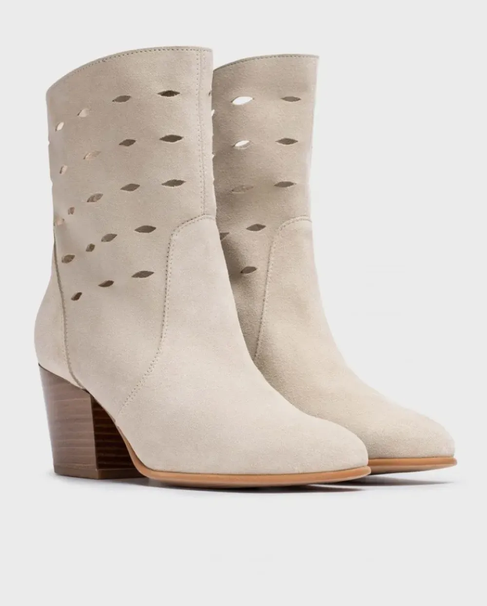 Botín Beige De Piel De Serraje Al Más Estilo Cowboy. Este Modelo Cuenta Con Un Tacón Con Forma De Embudo Y Una Altura De 6 Centímetros, La Punta Afliada Y El Detalle De Los Flecos Le Da Este Toque De Inspiracion Al Viejo Oeste. Con Plantilla Memorygel Que Proporciona Amortiguación Y Se Adapta A La Pisada Brindando Comodidad Durante Su Uso. ¡Consigue Los Tuyos Y Camina Con Estilo Y Confort En Cada Paso!