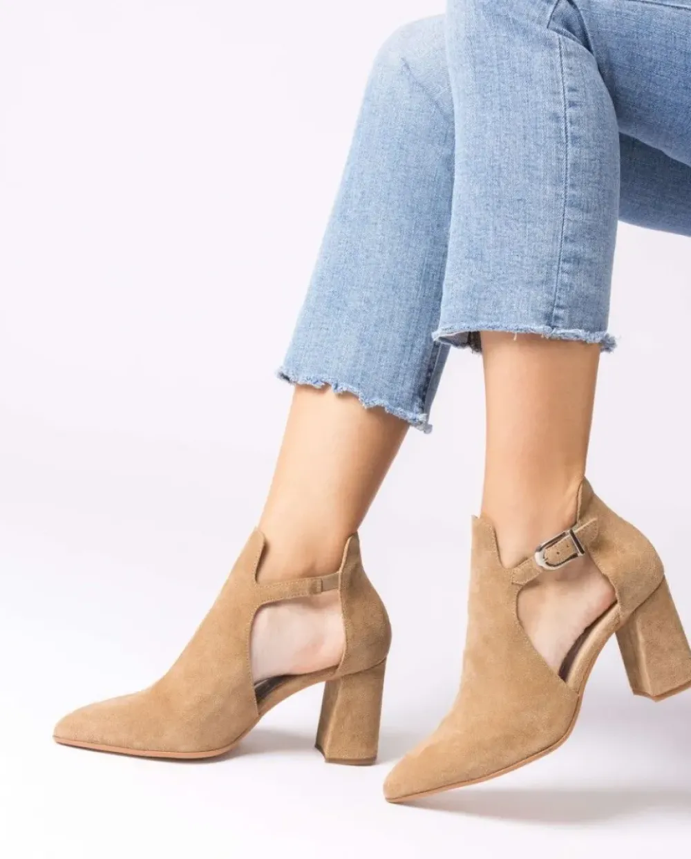 Botín Agujereado Beige De Piel De Serraje En Camel. Este Modelo Cuenta Con Oberturas Laterales Y Punta Afliada. Con Plantilla Memorygel Que Proporciona Amortiguación Y Se Adapta A La Pisada Brindando Comodidad Durante Su Uso. ¡Consigue Los Tuyos Y Camina Con Estilo Y Confort En Cada Paso!