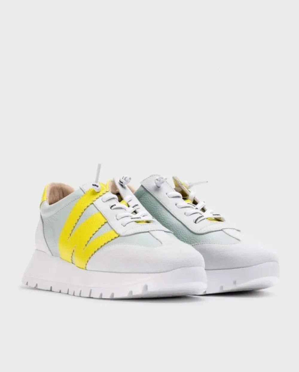 Deportivo Piel Ante Color Aqua Combinado En Piel Blanca Y Amarilla. Modelo Urban Y Contemporáneo Con Detalle De Logo Estampado, Y Cierre Mediante Cordones Ajustables. Plantilla Interna Extraible Memorygel Que Amotigua Tu Pisada. Su Suela Desarrollada Con Tecnología Wondersfly ™ , Aporta Una Extrema Ligereza Y Confort Al Modelo. ¡Consíguelo Ahora Para Experimentar La Moda Y La Comodidad En Cada Paso!