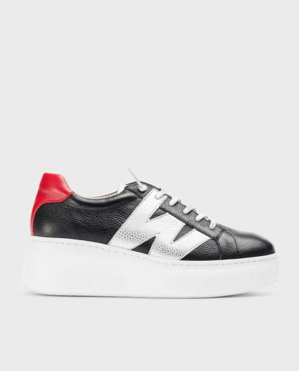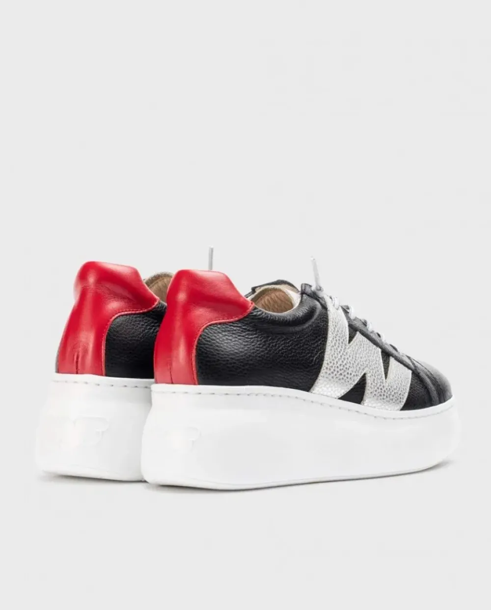Modelo En Piel Negra Combinandolo Con Metalizado Plata Y Detalle Trasero En Rojo. Modelo Zurich Actual Y Llamativo Con Logo En Relieve, Plantilla Extraíble Para Una Mayor Comodidad Y Cordones Elástico. Su Suela, Desarrollada Con La Tecnología Wondersfly™, Garantiza Una Sensación De Ligereza Y Confort En Cada Paso. ¡Consíguelo Ahora Para Experimentar La Moda Y La Comodidad En Cada Paso!
