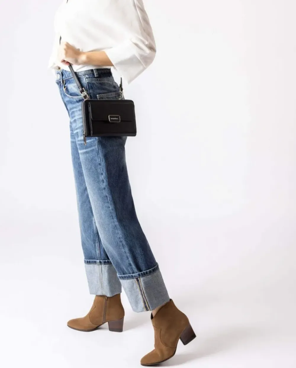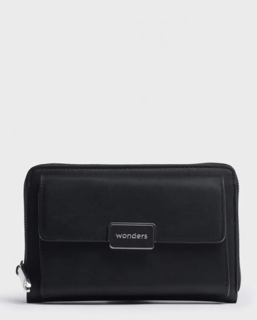 Maxi Cartera Bandolera En Color Negro. Un Modelo Totalmente Actual De Tamaño Mediano Que Incorpora Doble Compartimento Interno Para Tarjetas Con Bolsillo Central. Maxi Bolsillo Externo Con Cierre De Botón De Placa Metalizada Personalizada, Tira Extraíble Y Cierre Mediante Cremallera. Un Complemento Ideal Para Llevar Solo Lo Imprescindible Como El Dinero O El Móvil, Siempre Con Tus Zapatos Wonders. Tamaño19X13X2,5Cm
