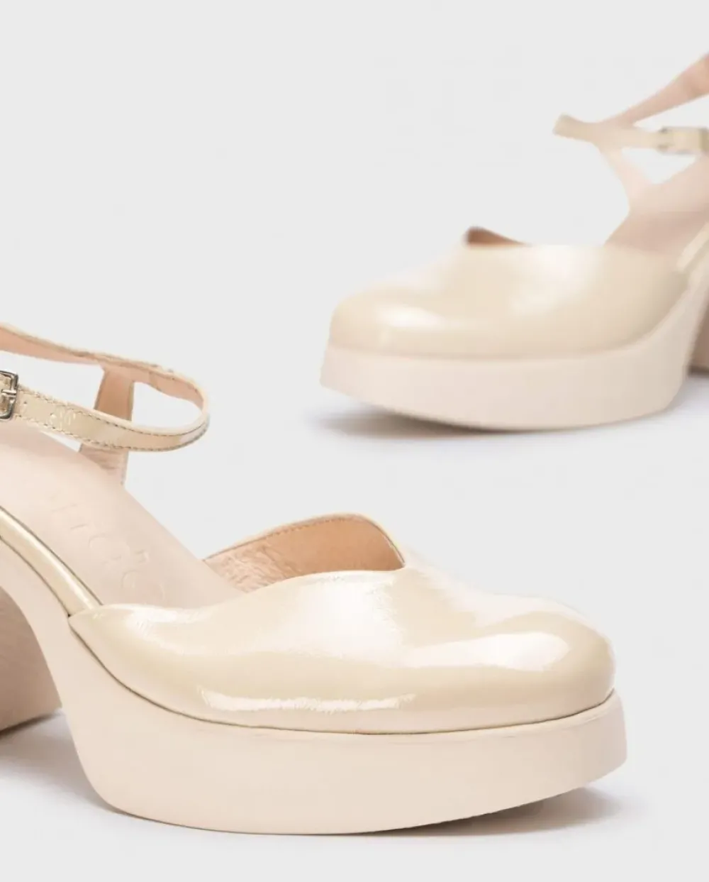 Mercedita Plataforma En Piel Charol En Color Natural. Un Modelo Elegante Con Detalle De Corte En V, Punta Redonda Y Cierre Mediante Tira Delantera Con Hebilla Ajustable. Suela Maxi Desarrollada Con Tecnología Wondersfly ™ Garantía De Ligereza Y Confort . Prepárate Para La Sensación, Yes We Fly Con Nuestra Mercedita Juana.