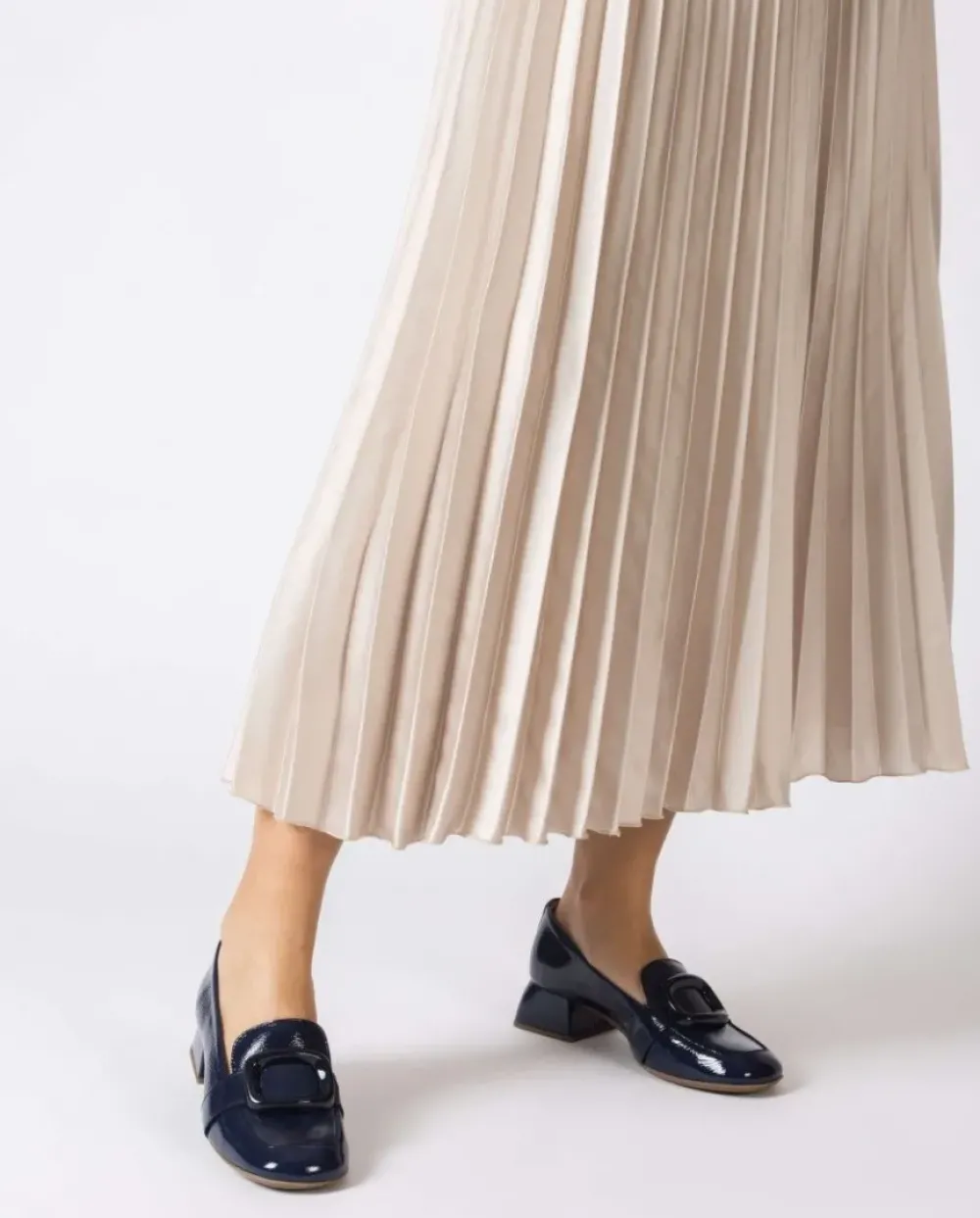 Mocasín De Piel Acharolada En Azul Oscuro. El Modelo Elein Tiene La Punta Redonda Y Un Detalle En Forma De Hebilla En La Parte Delantera, Además Tiene Un Tacón De 4 Centímetros. Disfruta De Comodidad Garantizada Gracias A La Plantilla Memorygel. ¡Consigue Los Tuyos Y Camina Con Estilo Y Confort En Cada Paso!