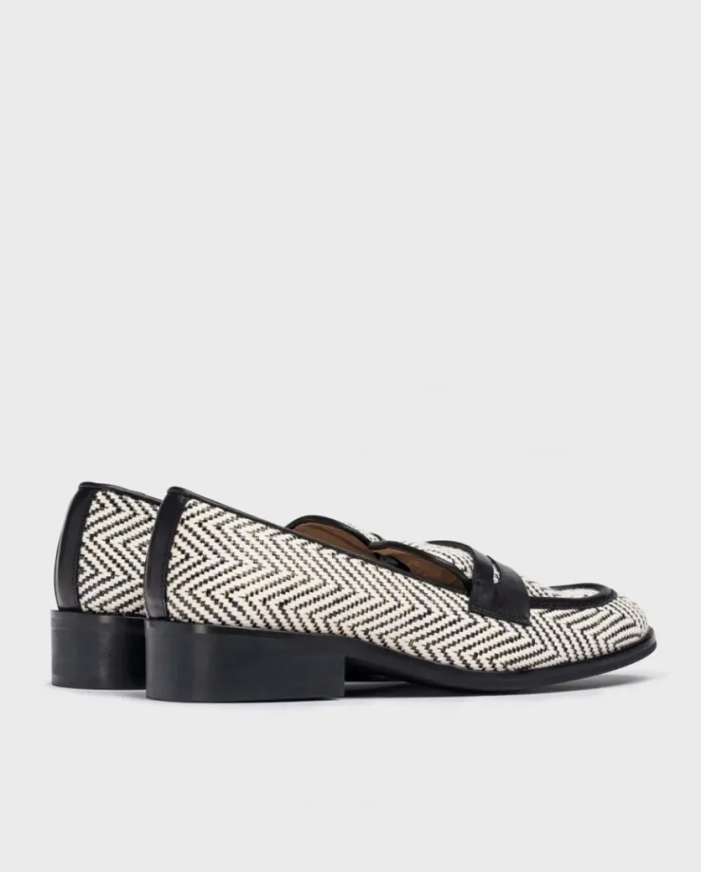 Mocasín Combinado De Piel Y Textil En Negro. El Modelo Tiene Punta Redondeada Tiene Punta Y Un Detalle En El Empiene De Antifaz. Disfruta De Comodidad Garantizada Gracias A La Plantilla Memorygel. ¡Consigue Los Tuyos Y Camina Con Estilo Y Confort En Cada Paso!