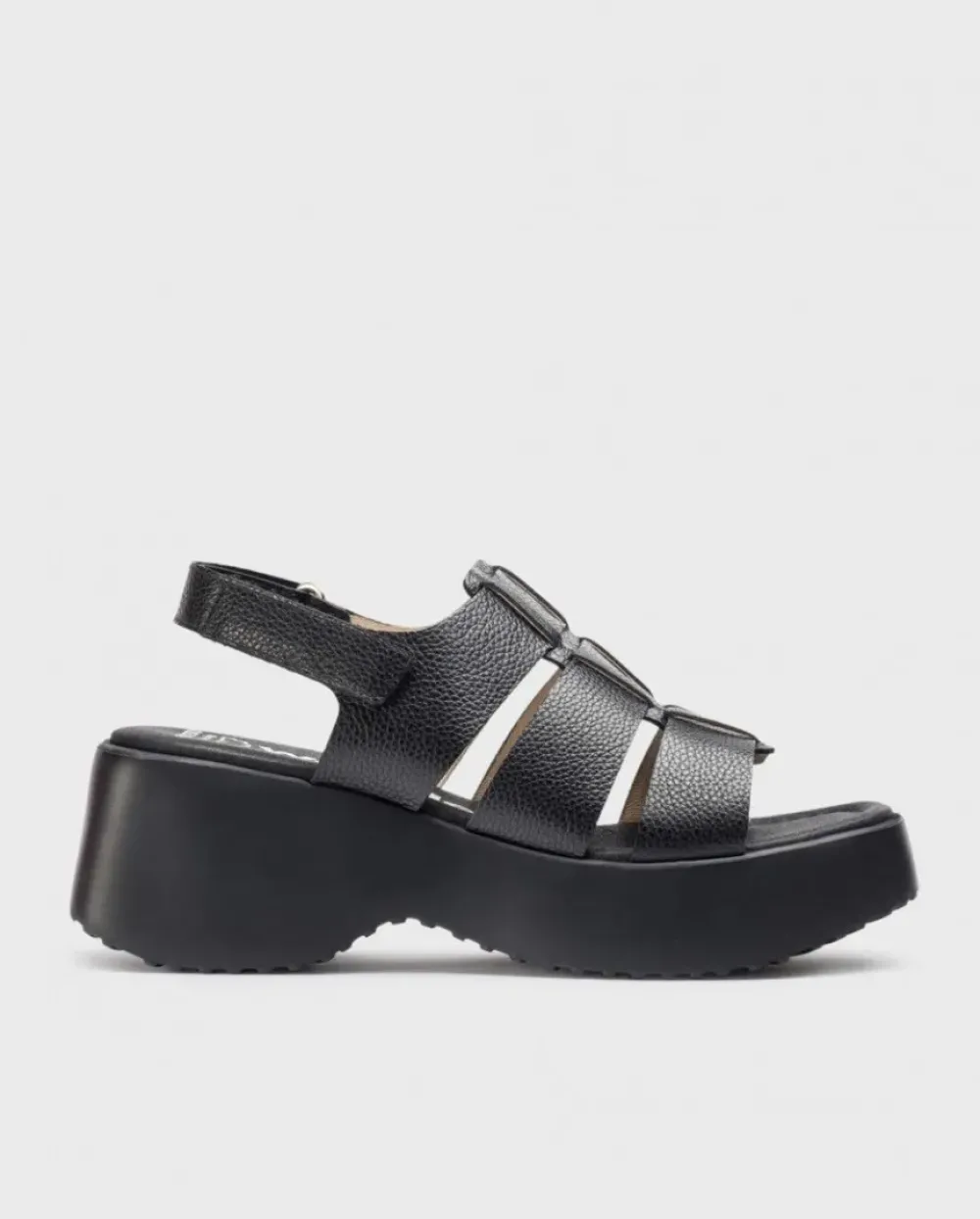 Sandalia De Plataforma En Piel Texturizada Negra. El Modelo Nora Es Un Modelo Todoterreno Perfecto Para Todos Tus Planes De Verano, El Modelo Cuenta Con Tres Tiras Que Sujetan El Empiene Ademas De Una Tira Trasera Ajustable Mediante Un Velcro, Tiene Una Plataforma Dentada De 6 Cms. Tu Mejor Aliado Para Este Verano Ya Está Aquí!