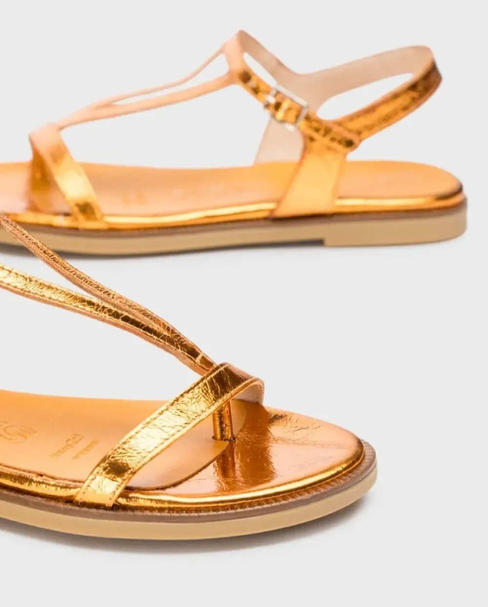 Sandalias Plana En Piel Metalizada Arrugada Naranja. El Modelo Jimena Versátil, Tiene Punta Redonda, Multi Tiras Y Una Sujección Perfecta Gracias A Una Hebilla Que Rodea El Tobillo . Disfruta De Comodidad Garantizada Gracias A La Plantilla Memorygel. ¡Consigue Los Tuyos Y Camina Con Estilo Y Confort En Cada Paso!