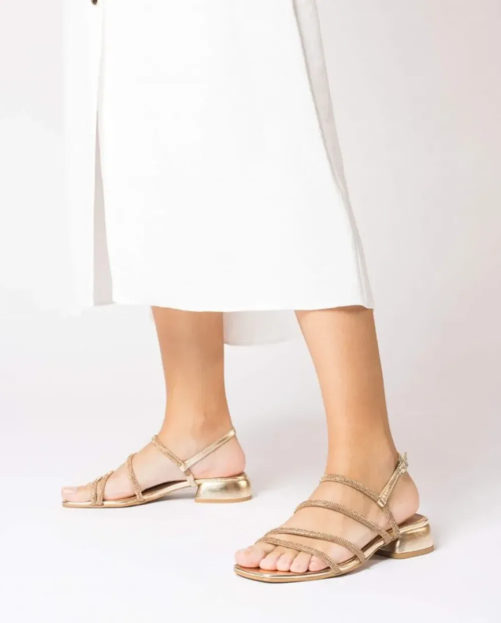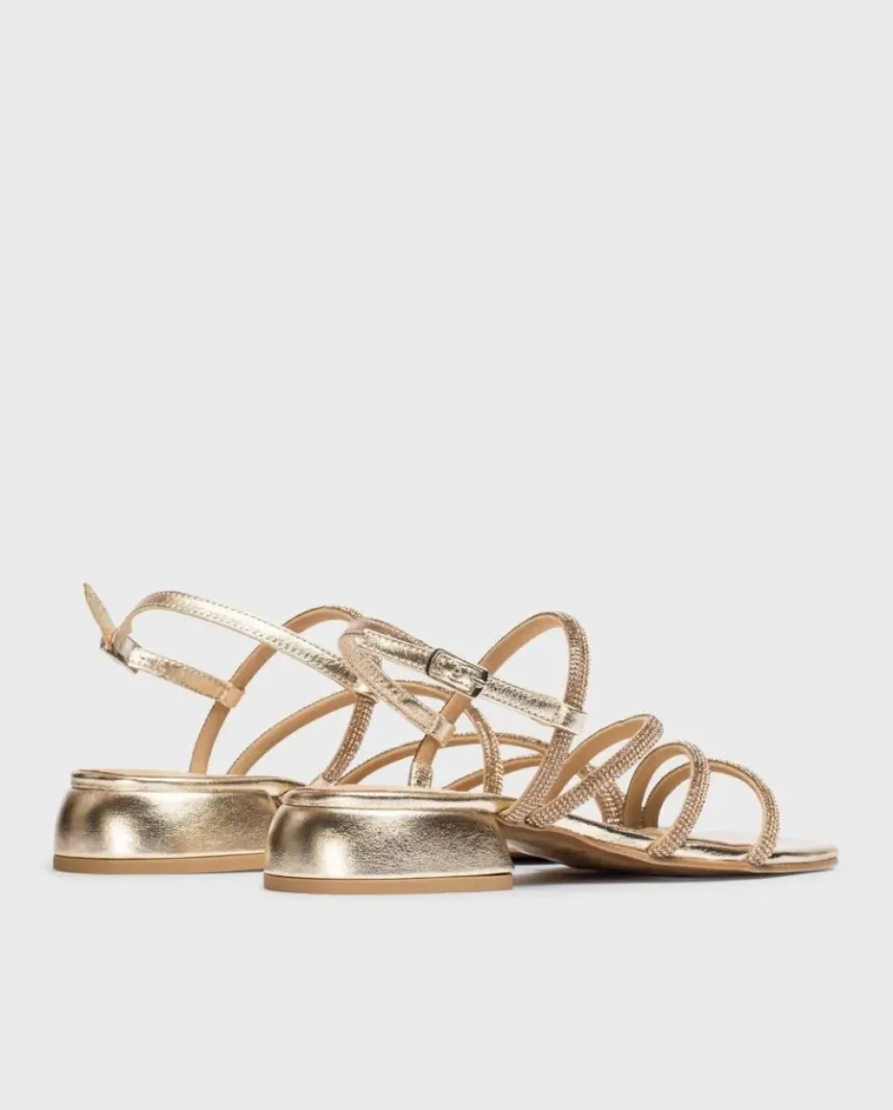 Sandalia Plana Platino. El Modelo Zaida Se Ajusta Al Pie Gracias A Sus Tiras Con Brillantes En Negro, A Aportan Elegancia Y Comocidad. Tiene Un Tacón De 1 Cm Y Una Sujección Perfecta Gracias A Una Hebilla Que Rodea El Tobillo. Disfruta De Comodidad Garantizada Gracias A La Plantilla Memorygel. ¡Consigue Los Tuyos Y Camina Con Estilo Y Confort En Cada Paso!