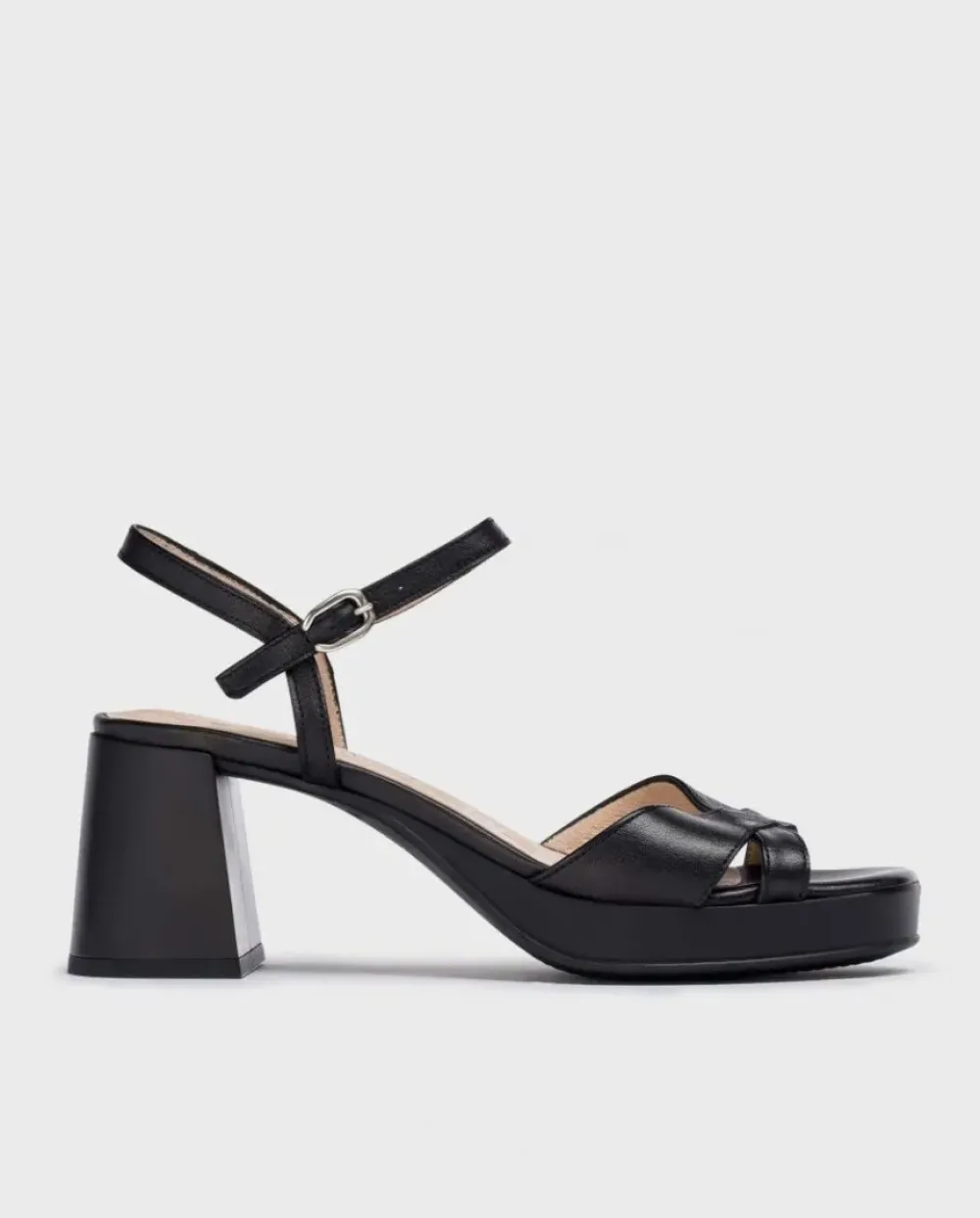 Sandalias En Piel Lisa Negro. Las Sandalias Tienen Un Tacón De 7 Centímetros, En El Empiene Tiene Doble Tira Que Favorecen Una Sujección Segura, Además Cuenta Con Otra Cinta Con Hebilla Que Se Ajusta Al Tobillo Y Una Plataforma Que La Hacen La Sandalias Con Tacón Más Cómoda, Perfecta Para Todo Tipo De Ocasiones. Su Suela De Goma Flexible Aporta Un Extra De Comodidad Al Modelo. Calidad Y Estilo Wonders.
