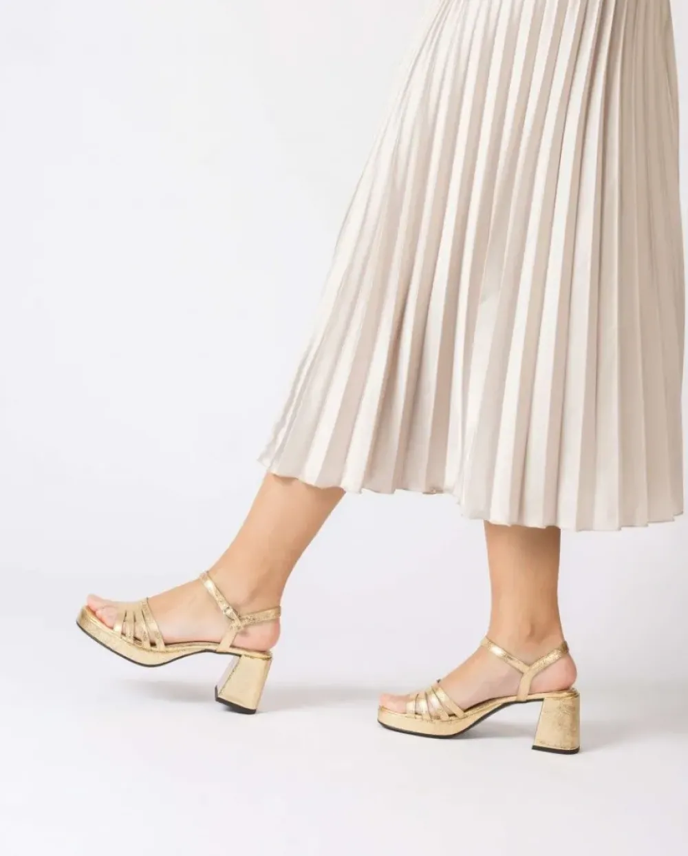 Sandalias De Piel Acharolada Oro. Las Sandalias Zaida Tienen Una Decoración Multi Tiras En El Empeine Una Sujección Garantizada Gracias A Una Fina Tira Que Rodea El Tobillo, Además Tiene Un Tacón De 7 Centímetro Y Una Plataforma Que Lo Hace Muy Cómodo. Su Suela De Goma Flexible Aporta Un Extra De Comodidad Al Modelo. Calidad Y Estilo Wonders. Extrema Ligereza Al Modelo, ¡Que No Te Vas A Querer Quitar!