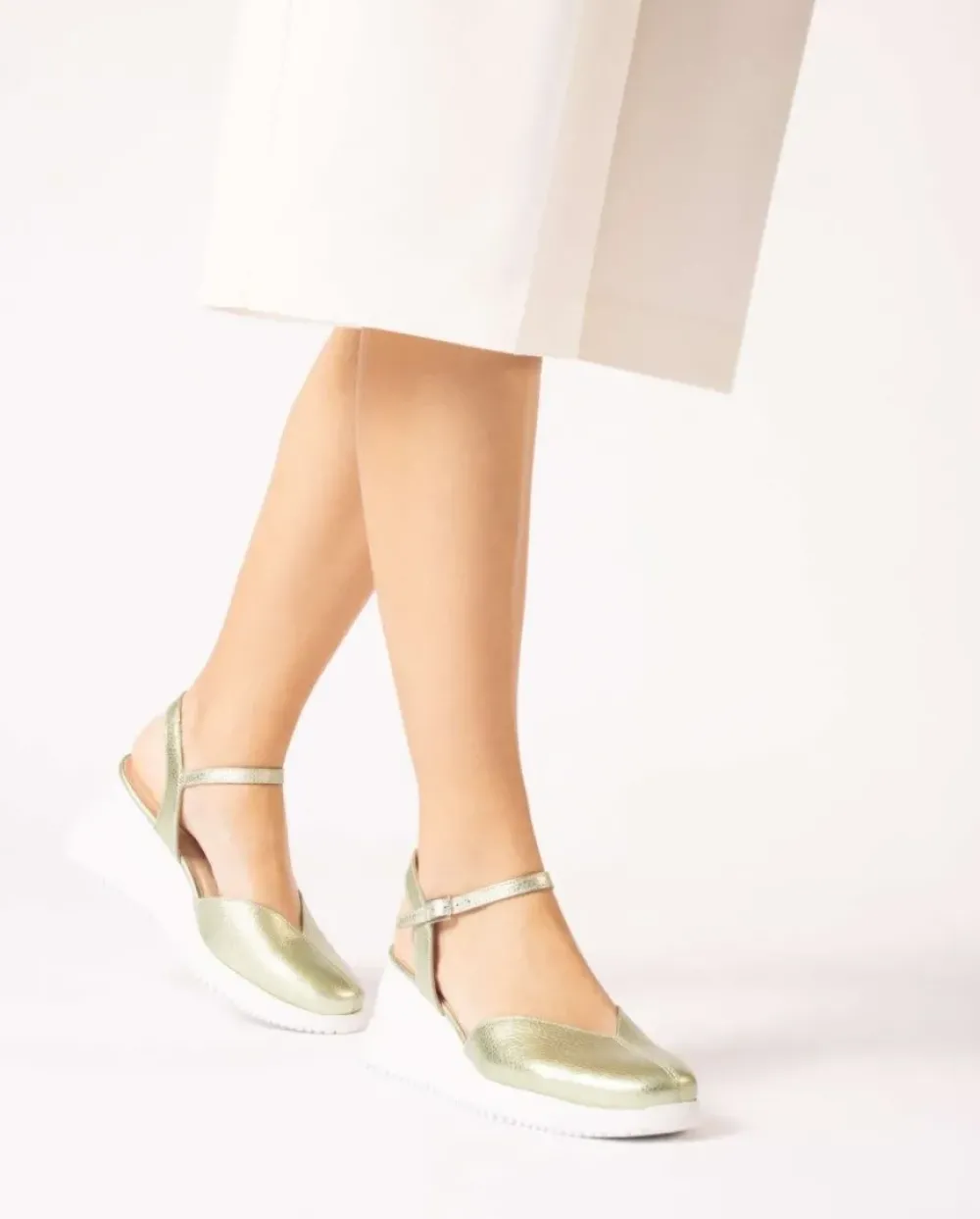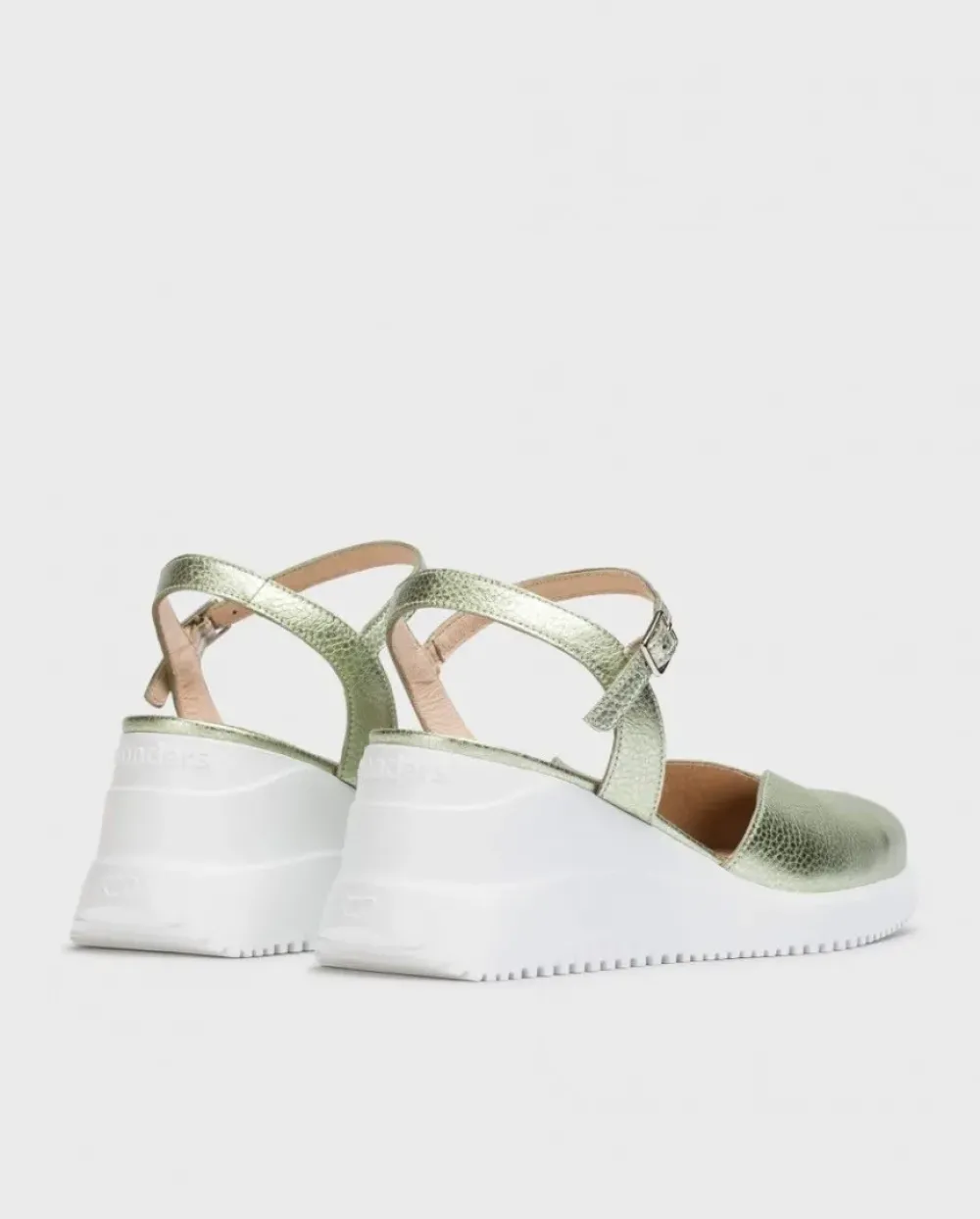 Zapatos De Cuña En Piel Metalizada Color Verde. Un Modelo Versátil Con Detalle En V, Destalonado Y Cierre Mediante Hebilla Lateral. La Suela Se Alza Sobre Una Cuña Desarrollada Con La Tecnología Wondersfly™, Lo Que Garantiza Una Experiencia Ligera Y Confortable A Cada Paso. Además, Su Plantilla Memorygel Ofrece Al Modelo Miami Un Extra De Comodidad Y Adaptabilidad.