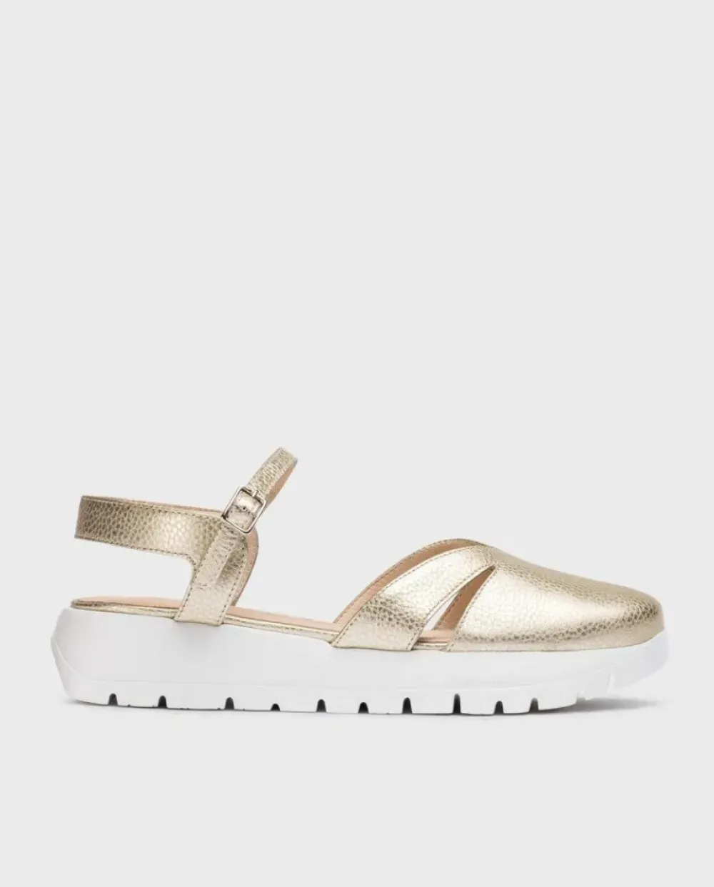 Zapato En Piel Metalizada En Color Plata. Modelo Versátil Con Punta Redondeada, Detalle Cut-Out Lateral Y Destalonado Con Cierre De Tira Con Hebilla Ajustable. Suela Dentada Desarrollada Con Tecnología Wondersfly ™ Que Aporta Una Extrema Ligereza Y Confort Al Modelo Vancouver. ¡Consíguelo Ahora Para Experimentar La Moda Y La Comodidad En Cada Paso!