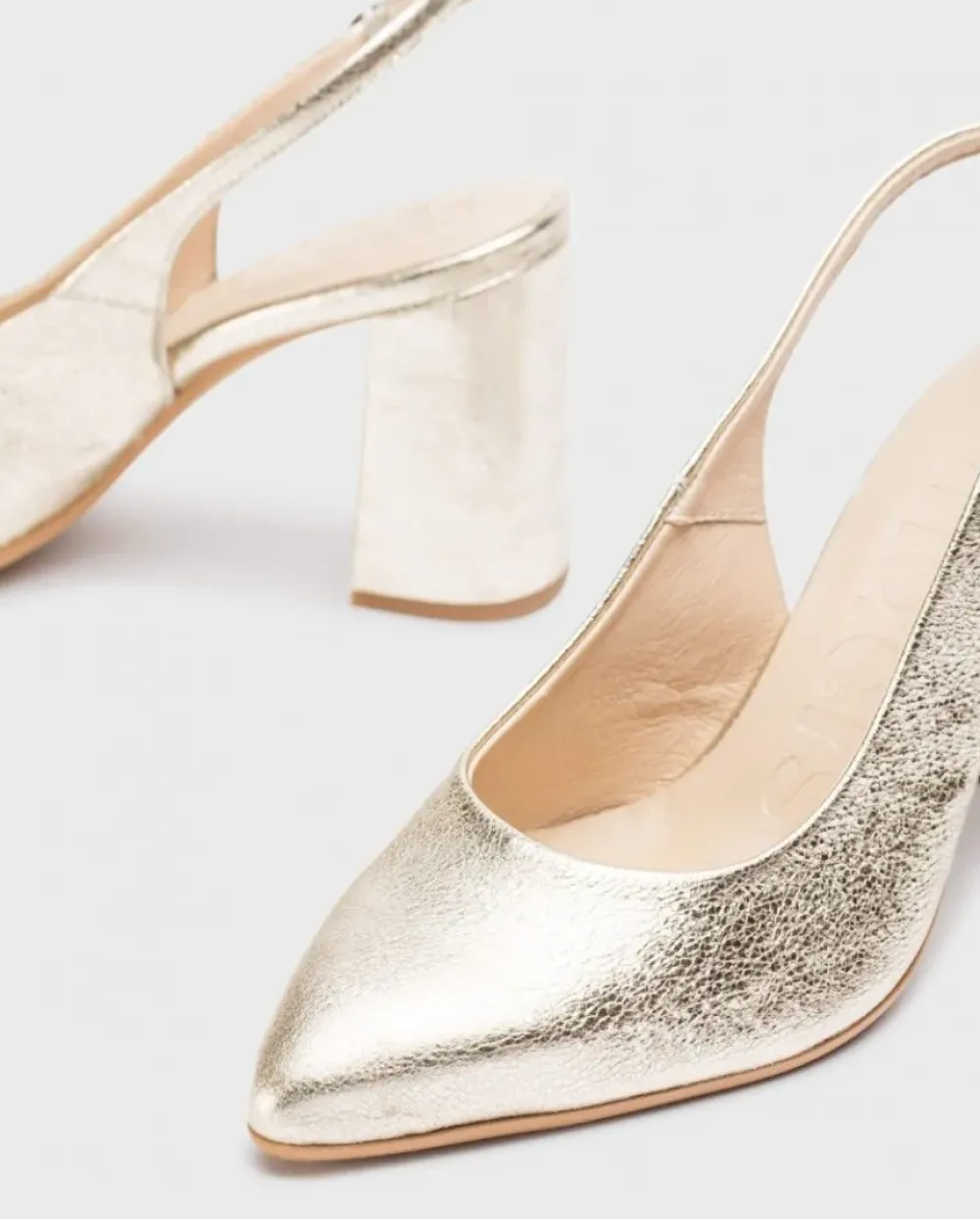 Zapato De Salón Destalonado En Piel Brillante Platino. El Modelo Vilma Es Clásico Y Elegante, Punta Puntiaguda, Tacón En Bloque De 8 Centimetros, La Sujección Perfecta Está Garantizada Gracias A Una Tira Con Hebilla Que Envuelve El Talón. Con Plantilla Memorygel Que Proporciona Amortiguación Y Se Adapta A La Pisada Brindando Comodidad Durante Su Uso. ¡Consigue Los Tuyos Y Camina Con Estilo Y Confort En Cada Paso!