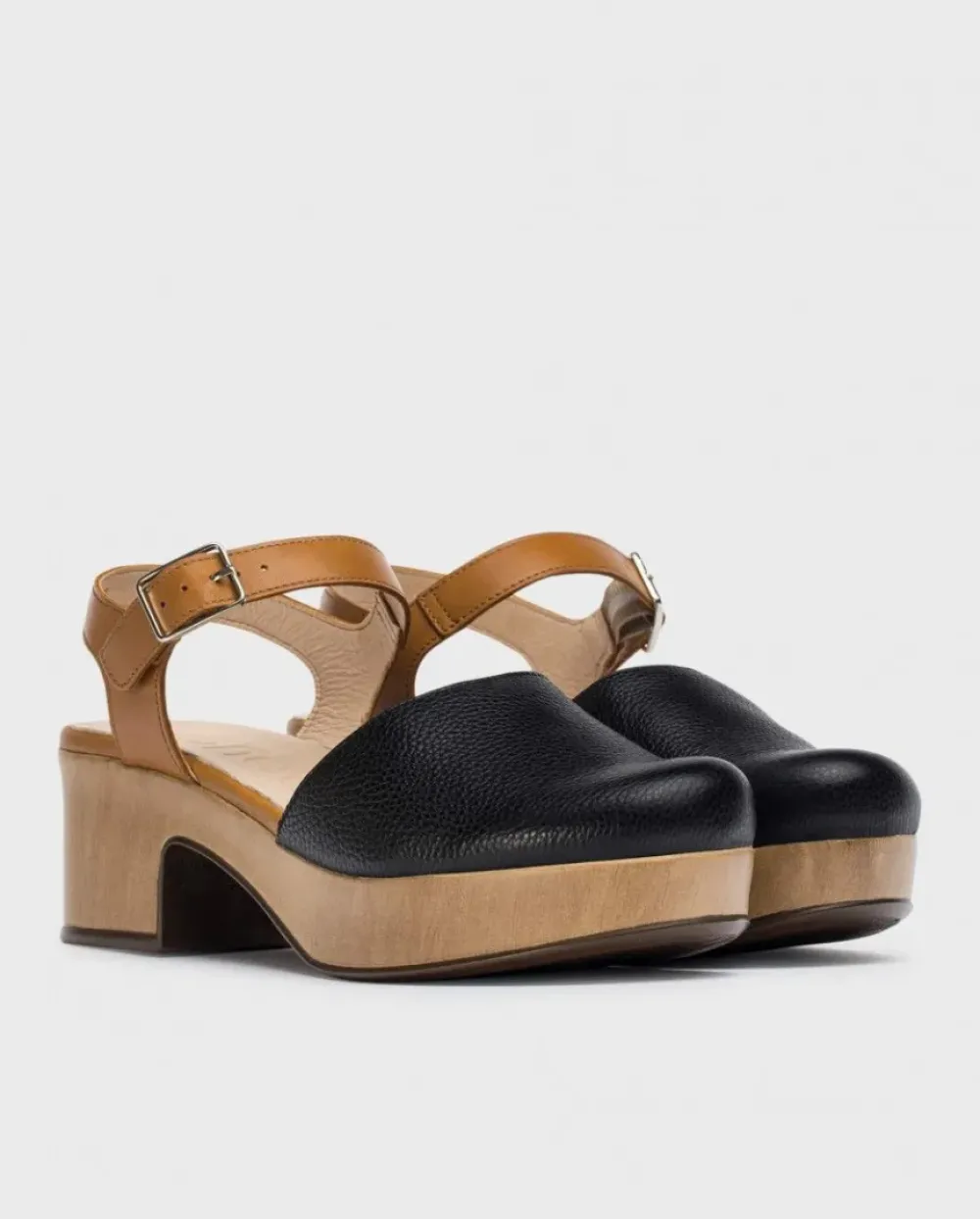 Zueco Amsterdam De Piel Texturizada En Color Negro. Un Modelo Versátil, Destalonado Y Con Tacón Imitación Madera. Suela Flexible Que Aporta Un Extra De Confort Al Modelo. Calidad Y Comodidad Wonders.