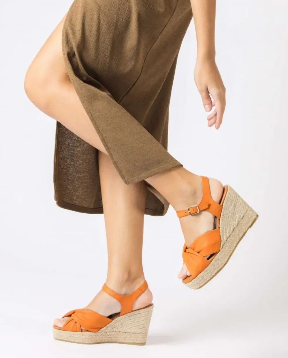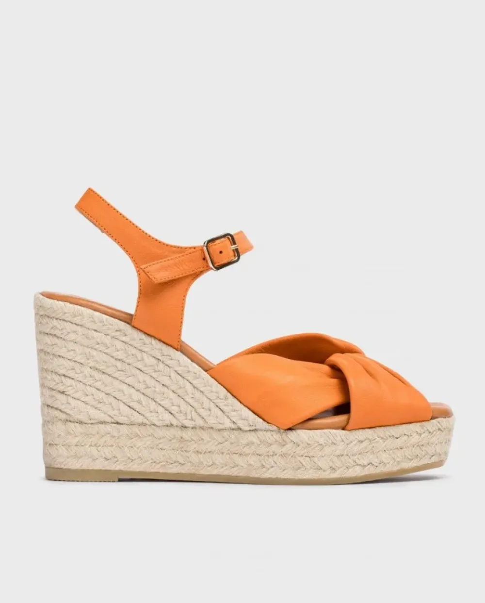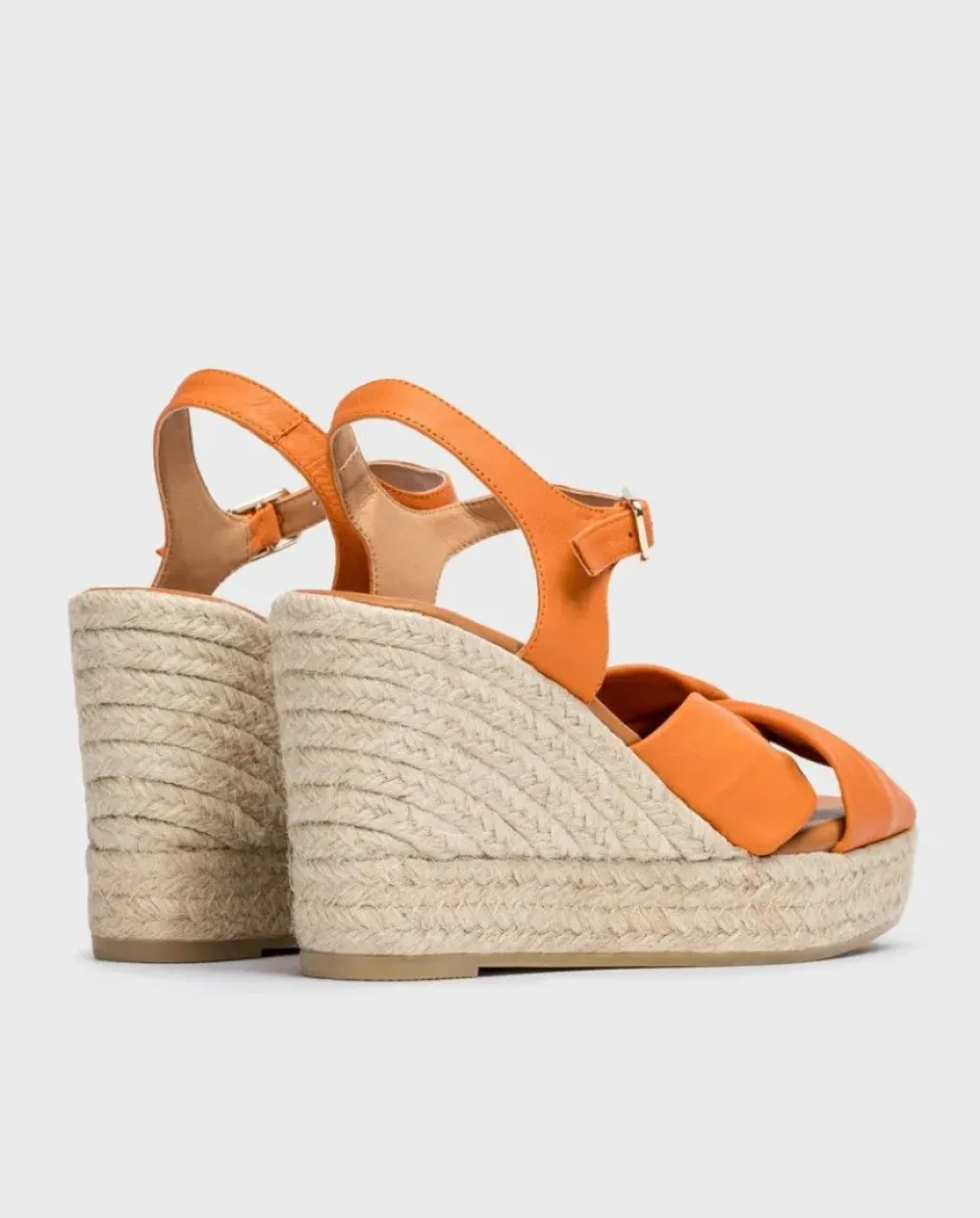 Alpargatas Con Cuña De Yute Trenzado Elaborada En Piel De Color Naranja. Sujección En Forma De Lazo Al Empeine. Cierre De Pulsera Con Hebilla Ajustable. Fabricadas En España Con Materiales Sostenibles, La Fibra De Yute Es 100% Biodegradable Y Reciclable, Inocuo Para El Medio Ambiente. Un Modelo Ideal Para Tus Looks De Verano.