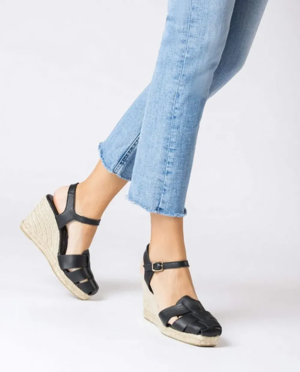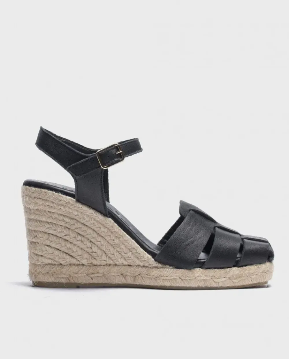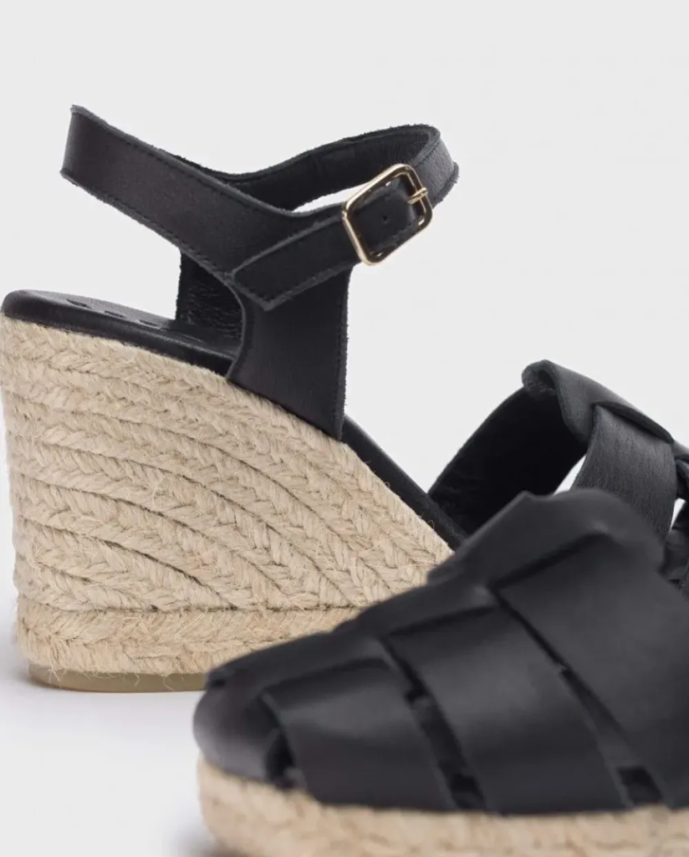 Alpargatas Cangrejeras Bora Bora De Yute Natural En Color Negro. Un Modelo Casual Destalonada Y Cierre Mediante Tira De Delantera Con Hebilla Ajustable. Fabricadas En España