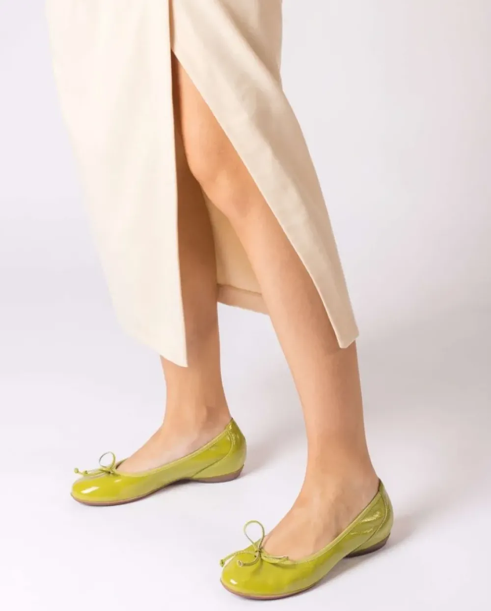 Bailarina Mujer En Piel Brillante Verde. El Modelo Atenas Es Casual Y Sofisticado Con Detalle De Lazo Delantero, Punta Redonda Y Elástico En El Ribete. El Piso Cuenta Con Tacón Interno Y Plantilla Memorygel Aportando Comodidad En Cada Pisada. ¡Consíguelo Ahora Para Experimentar La Moda Y La Comodidad En Cada Paso!