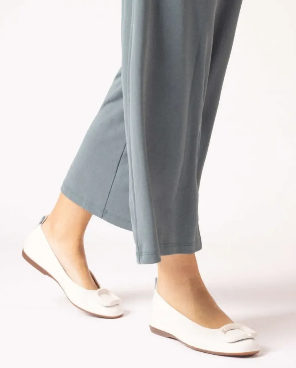 Bailarina Plana De Piel Charol Arrugado En Color Blanco. Un Modelo Elegante Que Destaca Por Su Sofisticado Detalle De Una Gran Hebilla A Juego, Acompañado De Una Tira Trasera Trasera Para Ayudar Al Calce Y Puntera Cuadrada. Su Plantilla Memory Gel Proporcionando Un Extra De Comodidad, Asegurando Confort Durante El Día. Añade Elegancia A Tus Pasos Con Nuestra Bailarina Berna