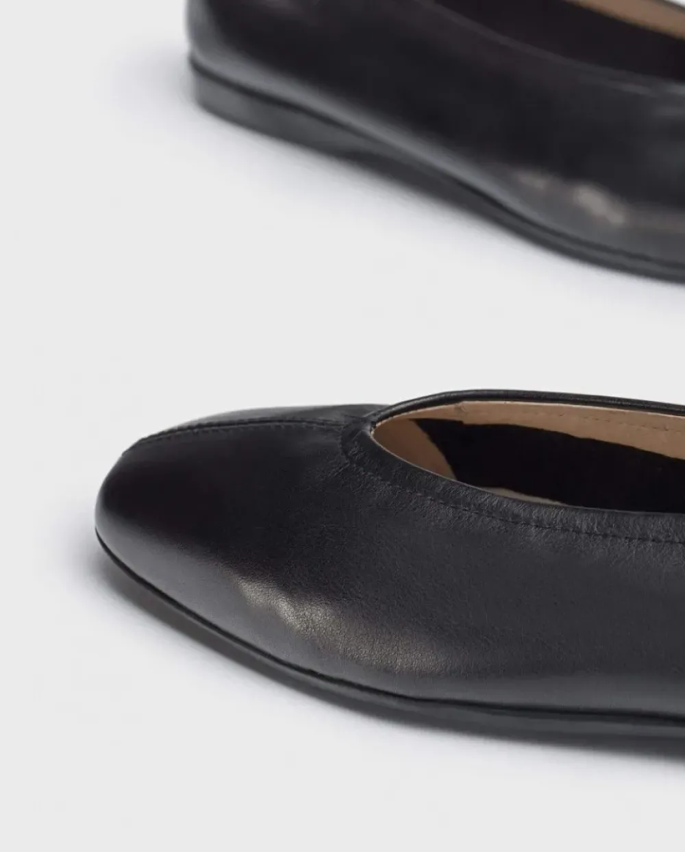 Bailarina Plana Mujer Piel En Color Negro. Modelo Casual De Corte Redondo , Detalle De Doble Pespuntes Y Tirador Trasero Para Mejor Calce.100% Hecha En España Por Manos Artesanas