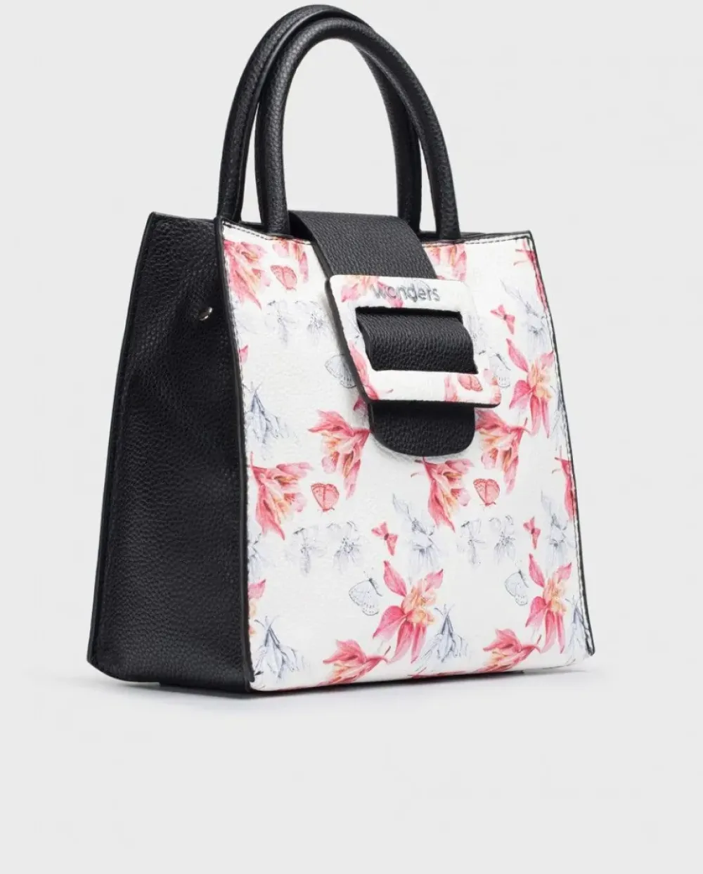 Bolso City Con Estampado Floral. Tamaño Mediano Con Doble Asa, De Mano Y Al Hombro Extraíble Con Bolsillo De Cremallera Interna Y Cierre Mediante Botón Igmantado Con Adorno De Hebilla. Un Complemento Perfecto Para Tus Zapatos Wonders. Tamaño 21X21X9