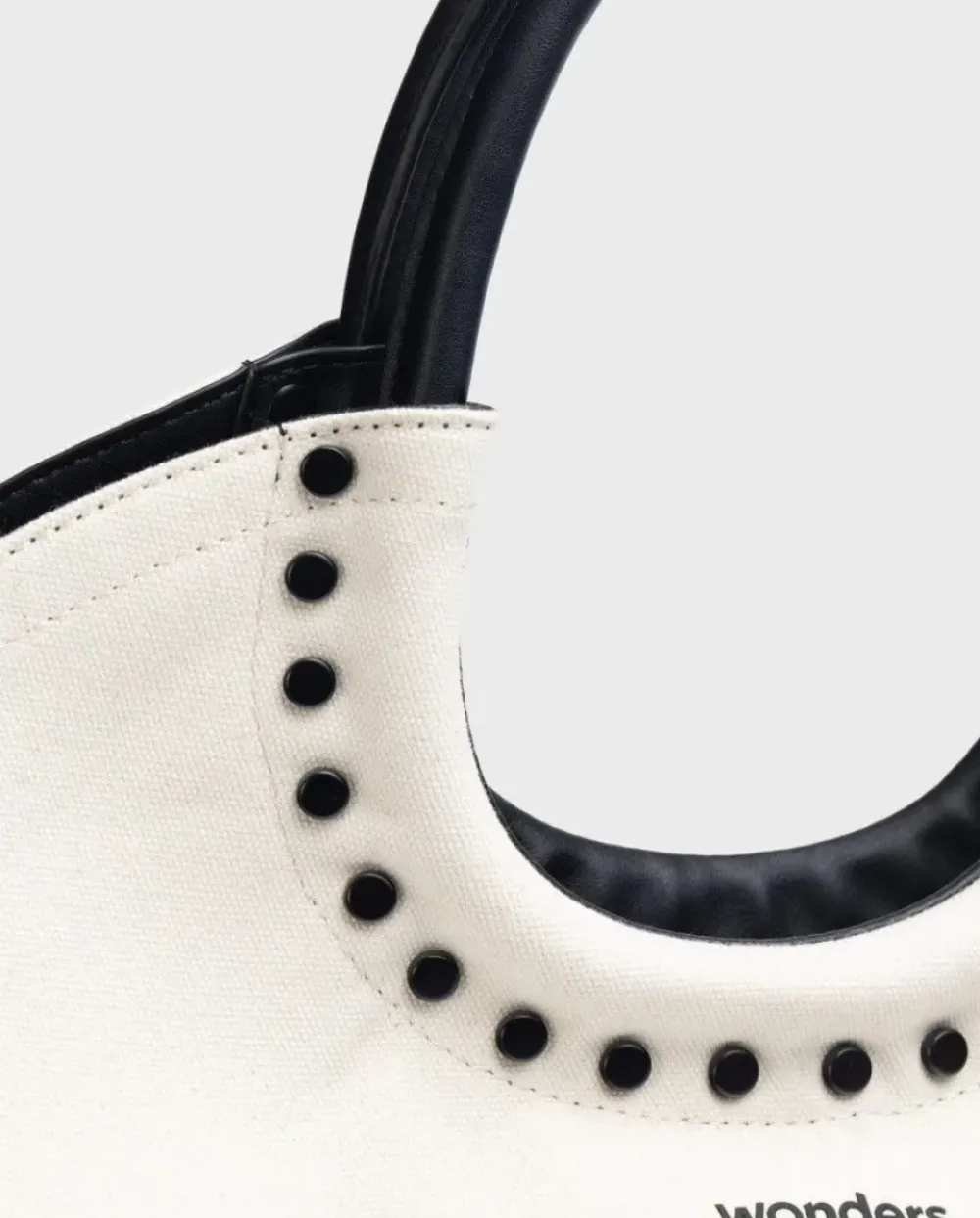 Bolso Shopper Fabricado En Algodón Combinado En Dos Colores Blanco/Negro . Un Modelo De Tamaño Grande Con Asa De Mano, Y Adorno De Remaches Con Serigrafía De Marca. Contiene Un Compartimento Interior Extraíble Con Bolsillos Laterales Y Cierre Con Cremallera. Cierre Central Con Botón Igmantado. Tamaño 34X51X3Cm