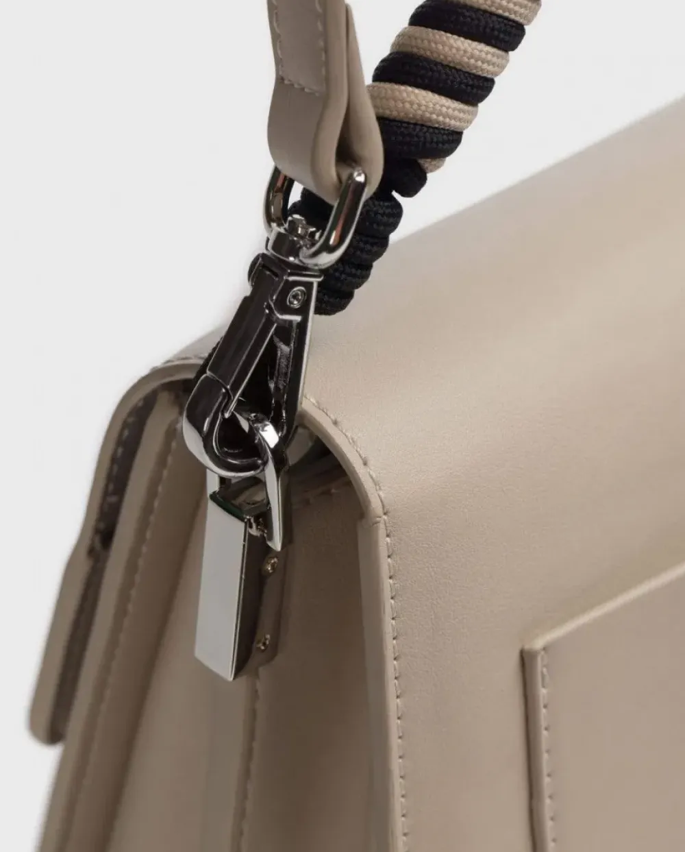 Bolso Trapecio En Color Natural. Tamaño Mediano Con Doble Asa Y Trenzado Bicolor. Doble Bolsillo Interono Uno De Ellos Con Cremallera Y Marca Serigrafiada. Cierre Exterior Con Botón Magnético. Tamaño: 22X16X9 Cm.