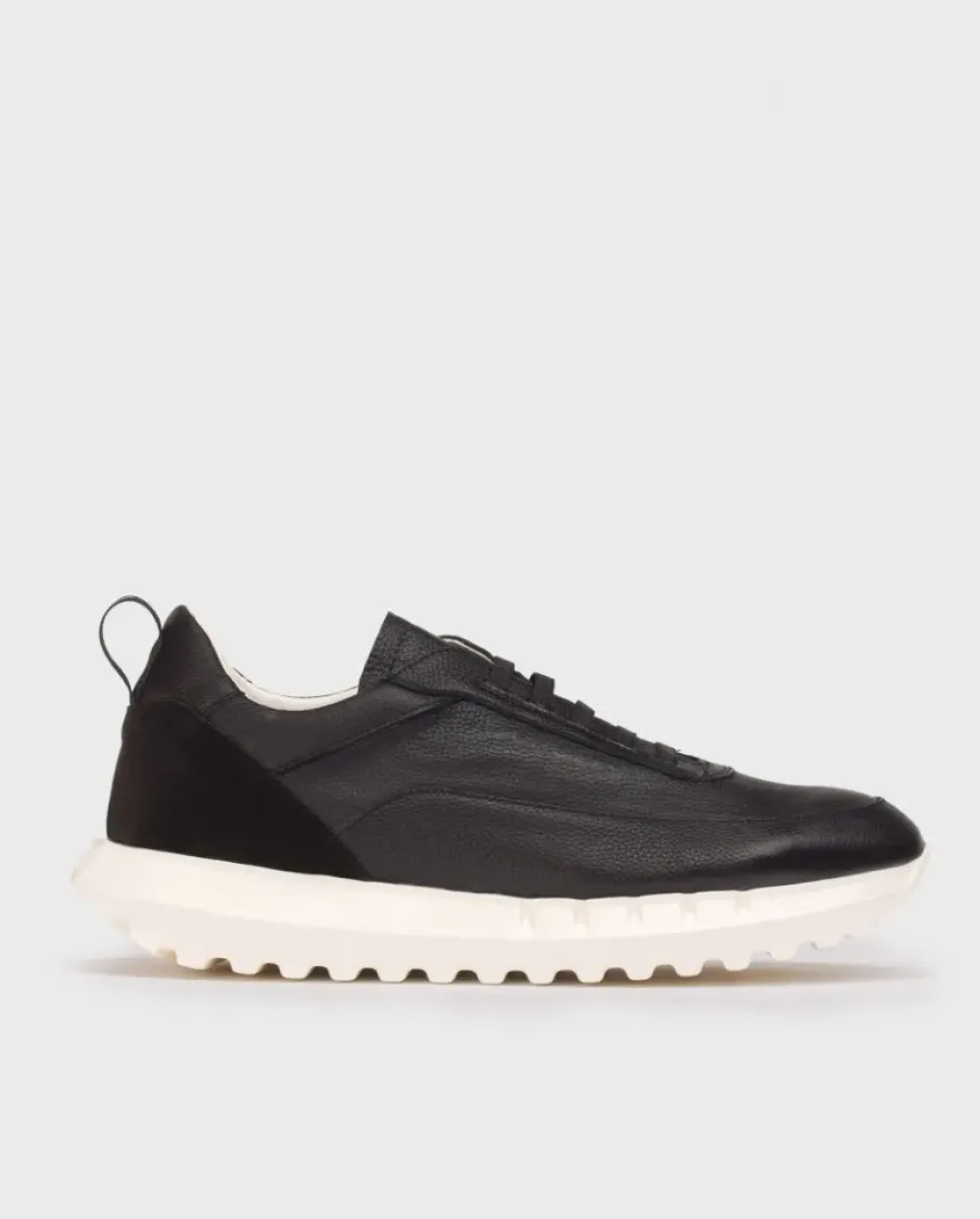 Deportivo Caballero Combinado En Dos Pieles Color Negro. Un Modelo Versátil Con Detalles De Piel Serraje Y Tira Logotipada En La Parte Trasera, Plantilla Extraíble Y Cierre Mediante Cordón De Elástico No Ajustable. Piso Dentado Flexible. Estilo Y Comodidad Wonders