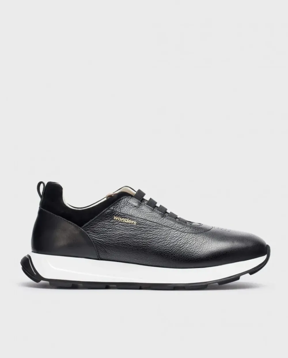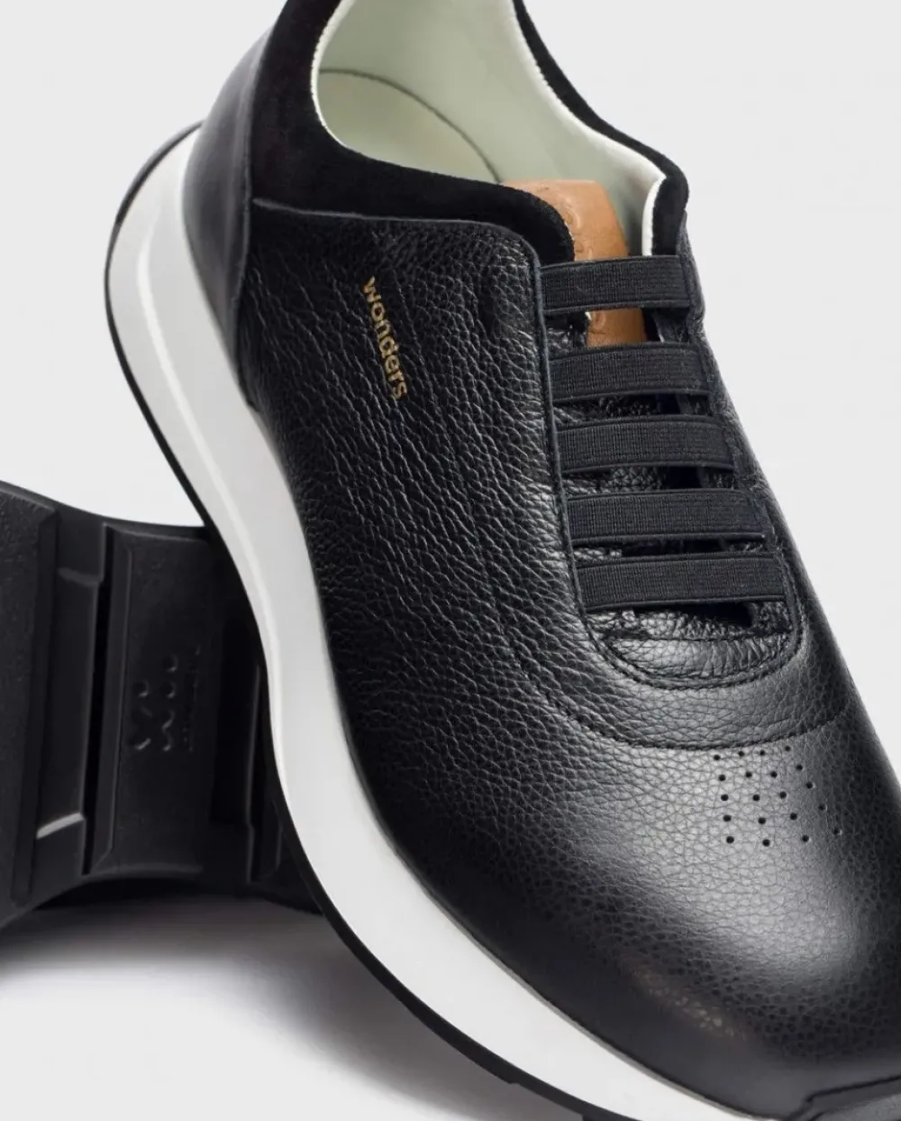 Deportivo Caballero Piel Color Negro. Modelo Casual, Con Tira Trasera Para Un Mejor Calce, Maxi Suela Y Cierre Mediante Cordones. Estilo Y Comodidad Wonders
