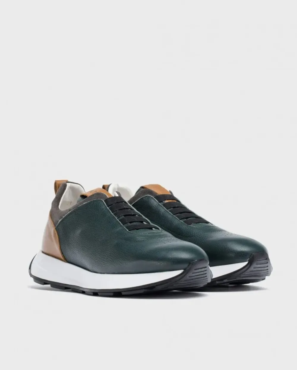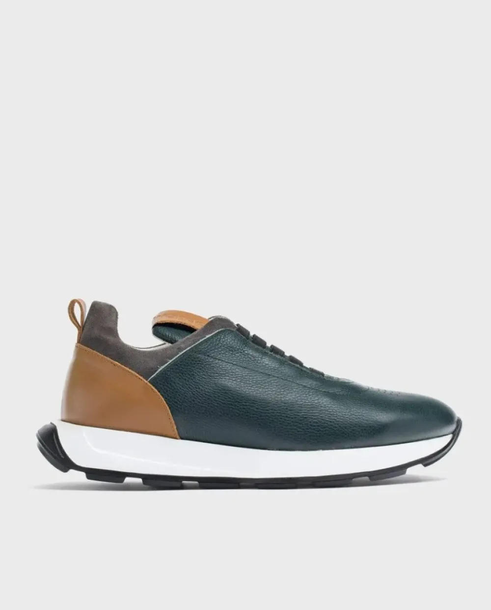 Deportivo Caballero Piel Color Verde. Modelo Casual, Con Tira Trasera Para Un Mejor Calce, Maxi Suela Y Cierre Mediante Cordones. Estilo Y Comodidad Wonders