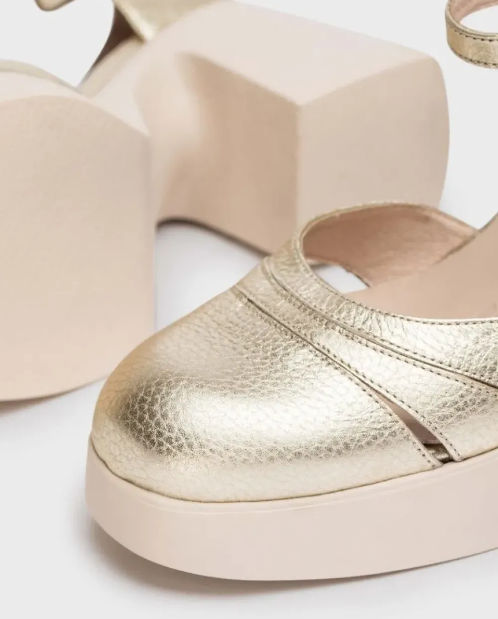 Mercedita Plataforma En Piel Metalizada Color Platino. Un Modelo Femenino Con Tiras Cut- Out De Punta Redonda Y Cierre Mediante Cierre De Hebilla Lateral Que Proporciona Un Ajuste Seguro Y Personalizado.Suela Maxi Desarrollada Con Tecnología Wondersfly ™ Garantía De Ligereza Y Confort . Prepárate Para La Sensación, Yes We Fly Con Nuestra Mercedita Carmen.