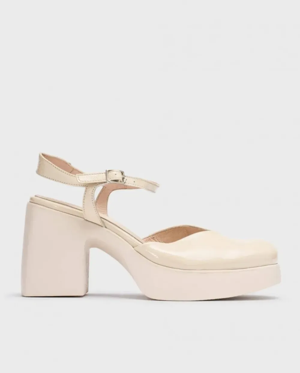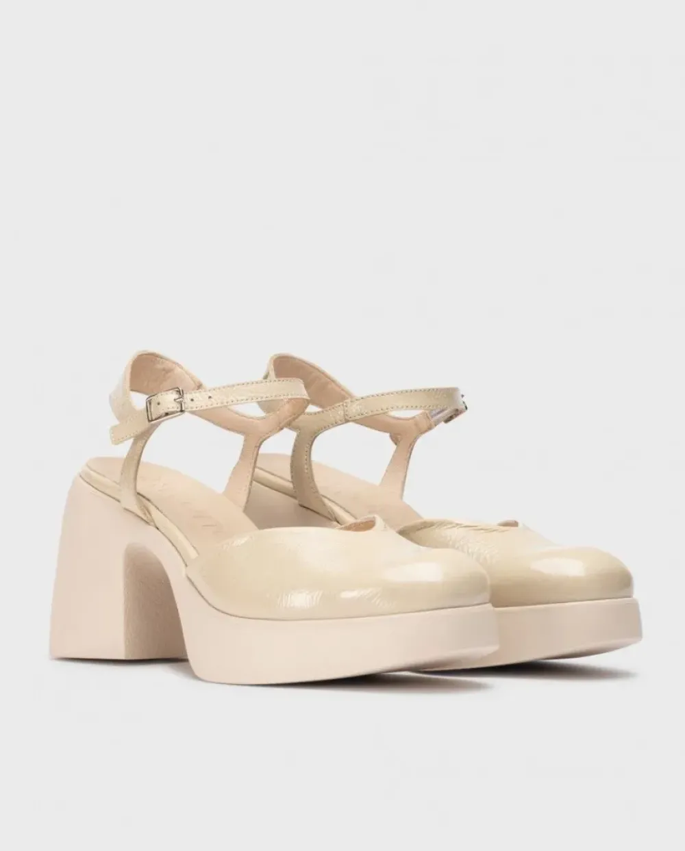 Mercedita Plataforma En Piel Charol En Color Natural. Un Modelo Elegante Con Detalle De Corte En V, Punta Redonda Y Cierre Mediante Tira Delantera Con Hebilla Ajustable. Suela Maxi Desarrollada Con Tecnología Wondersfly ™ Garantía De Ligereza Y Confort . Prepárate Para La Sensación, Yes We Fly Con Nuestra Mercedita Juana.