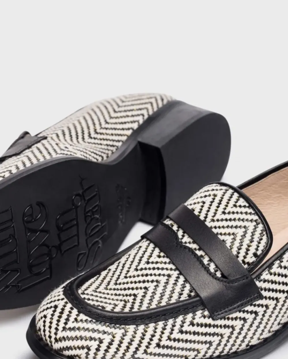 Mocasín Combinado De Piel Y Textil En Negro. El Modelo Tiene Punta Redondeada Tiene Punta Y Un Detalle En El Empiene De Antifaz. Disfruta De Comodidad Garantizada Gracias A La Plantilla Memorygel. ¡Consigue Los Tuyos Y Camina Con Estilo Y Confort En Cada Paso!