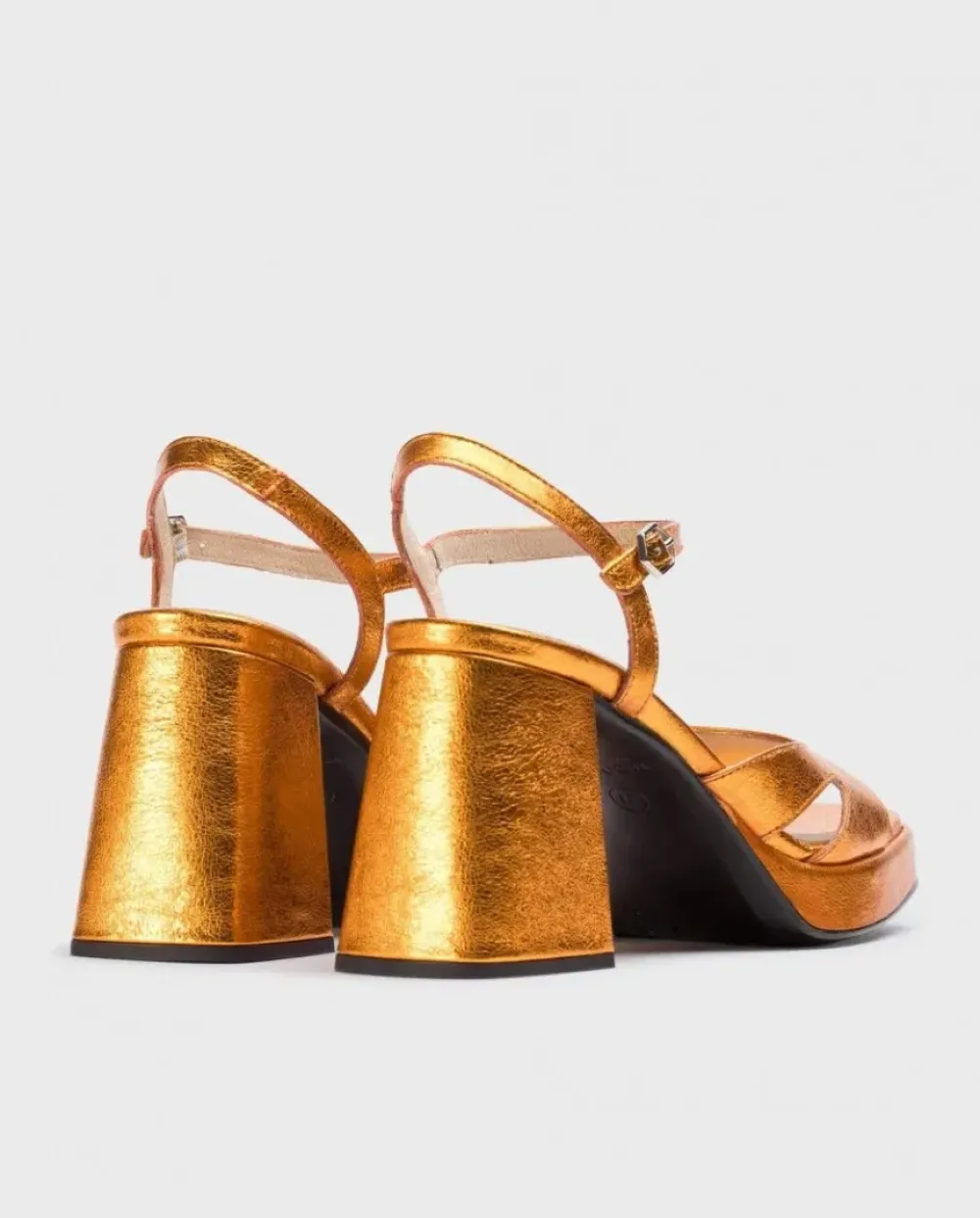 Sandalia Plataforma De Piel Metalizada Color Naranja. Un Modelo Versátil Que Destaca Por Su Tira Ancha. Con Adorno De Corte Cut-Out En Los Laterales.Su Tacón Ancho, Su Plataforma Delantera, Su Tira Delantera Con Hebilla Ajustable Y Su Plantilla Memory Gel, El Modelo Frida Se Presenta Como La Elección Perfecta Para Cualquier Ocasión