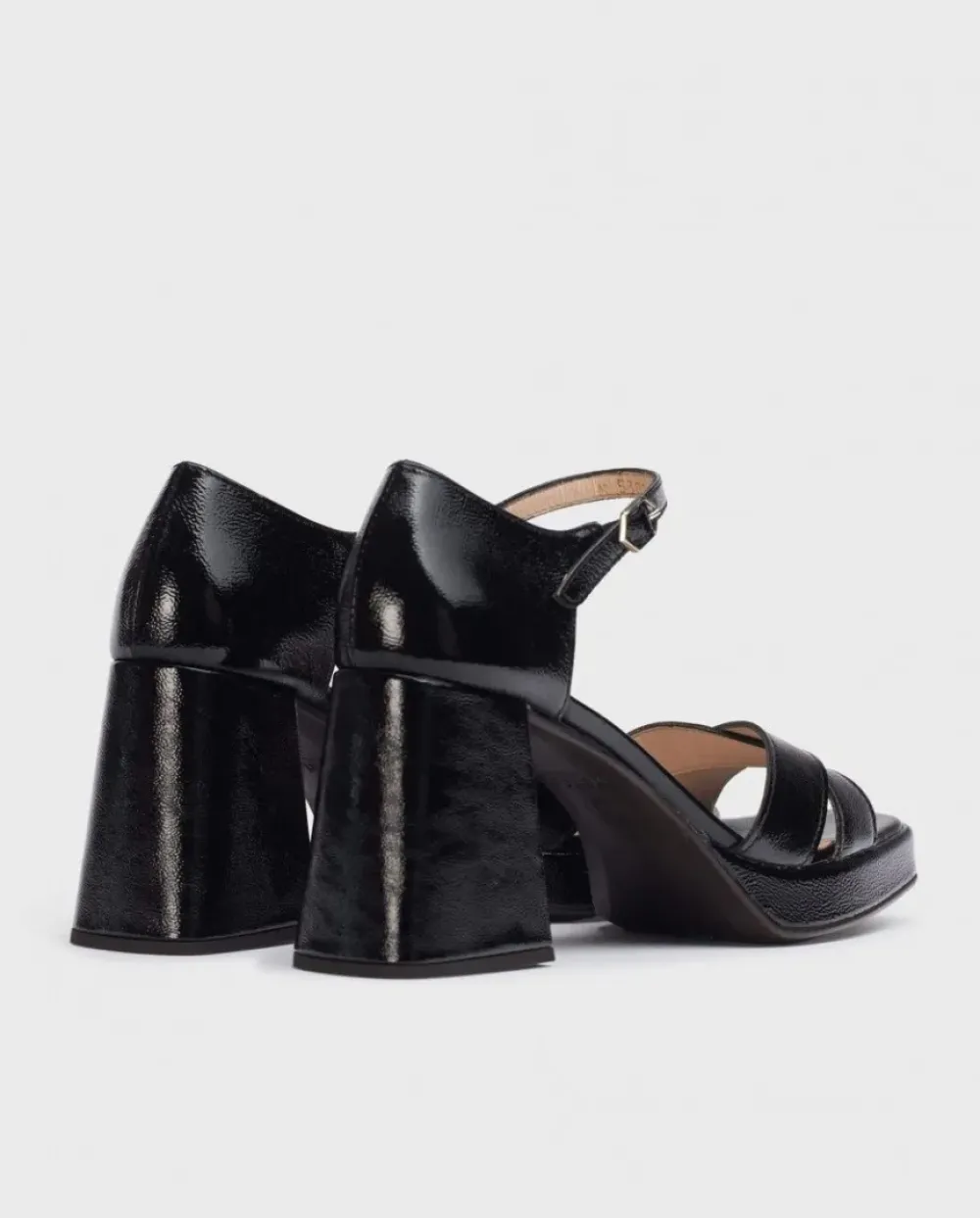 Sandalia Tacón Beatle De Piel En Color Negro. Un Modelo Elegante, Versátil Y Destalonado De Tira Delantera, Tacón Alto Ancho, Punta Cuadrada Y Cierre Mediante Tira Con Hebilla Ajustable.Con Plantilla Memory Gel En Interior Que Ayuda Al Descanso Del Pie. Calidad Wonders.