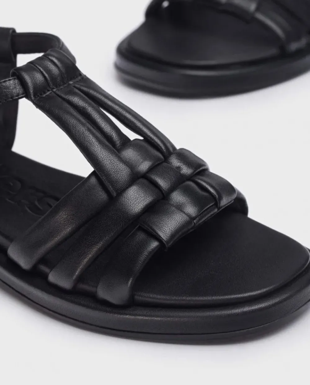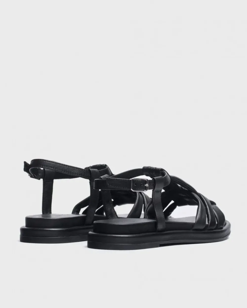 Sandalia Plana Luna De Piel En Color Negro. Un Modelo Versátil Con Detalle De Tiras Entrelazadas. Cierre Mediante Tira Con Hebilla Ajustable. Suela Acolchada Que Permite Conseguir Un Calzado Cómodo Y A La Moda.