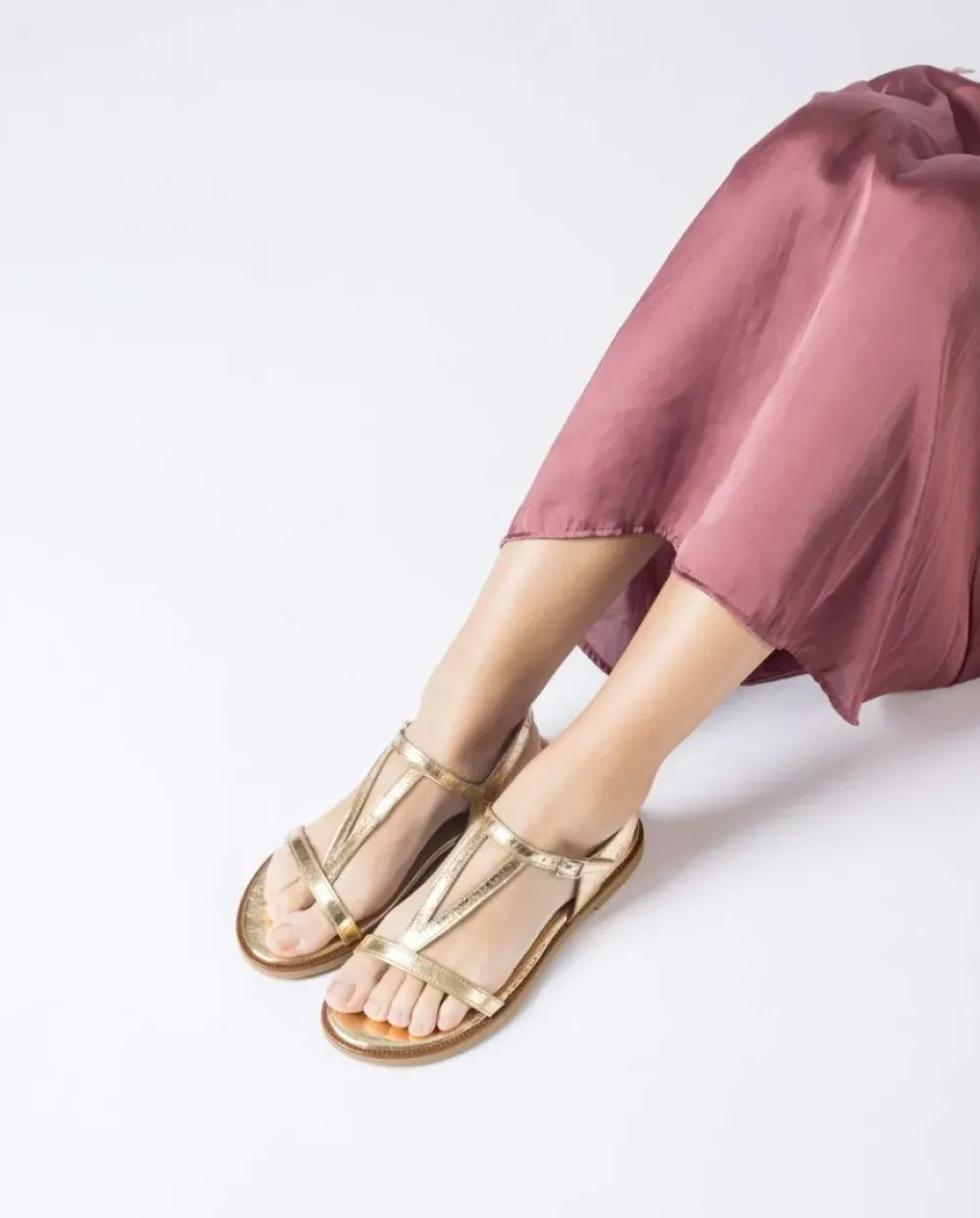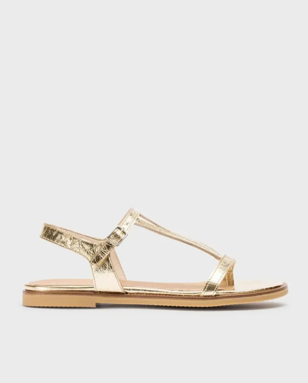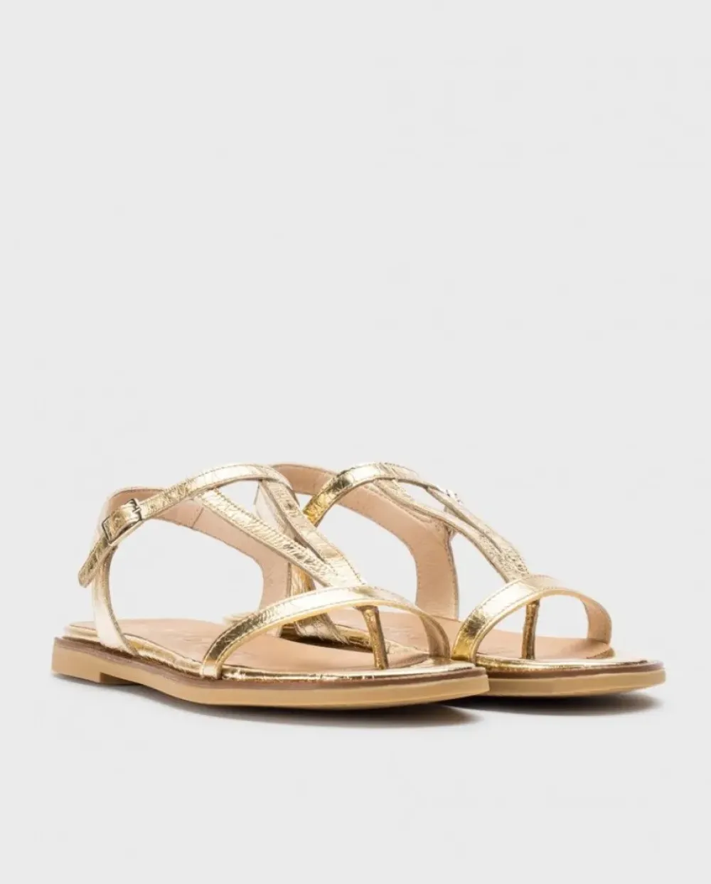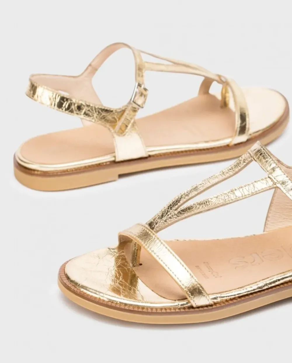Sandalias Plana En Piel Metalizada Arrugada Naranja. El Modelo Jimena Versátil, Tiene Punta Redonda, Multi Tiras Y Una Sujección Perfecta Gracias A Una Hebilla Que Rodea El Tobillo. Disfruta De Comodidad Garantizada Gracias A La Plantilla Memorygel. ¡Consigue Los Tuyos Y Camina Con Estilo Y Confort En Cada Paso!