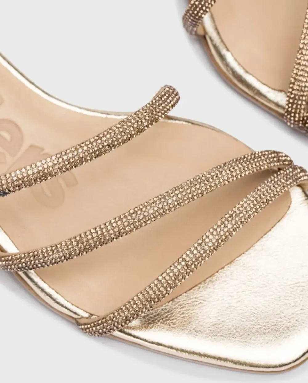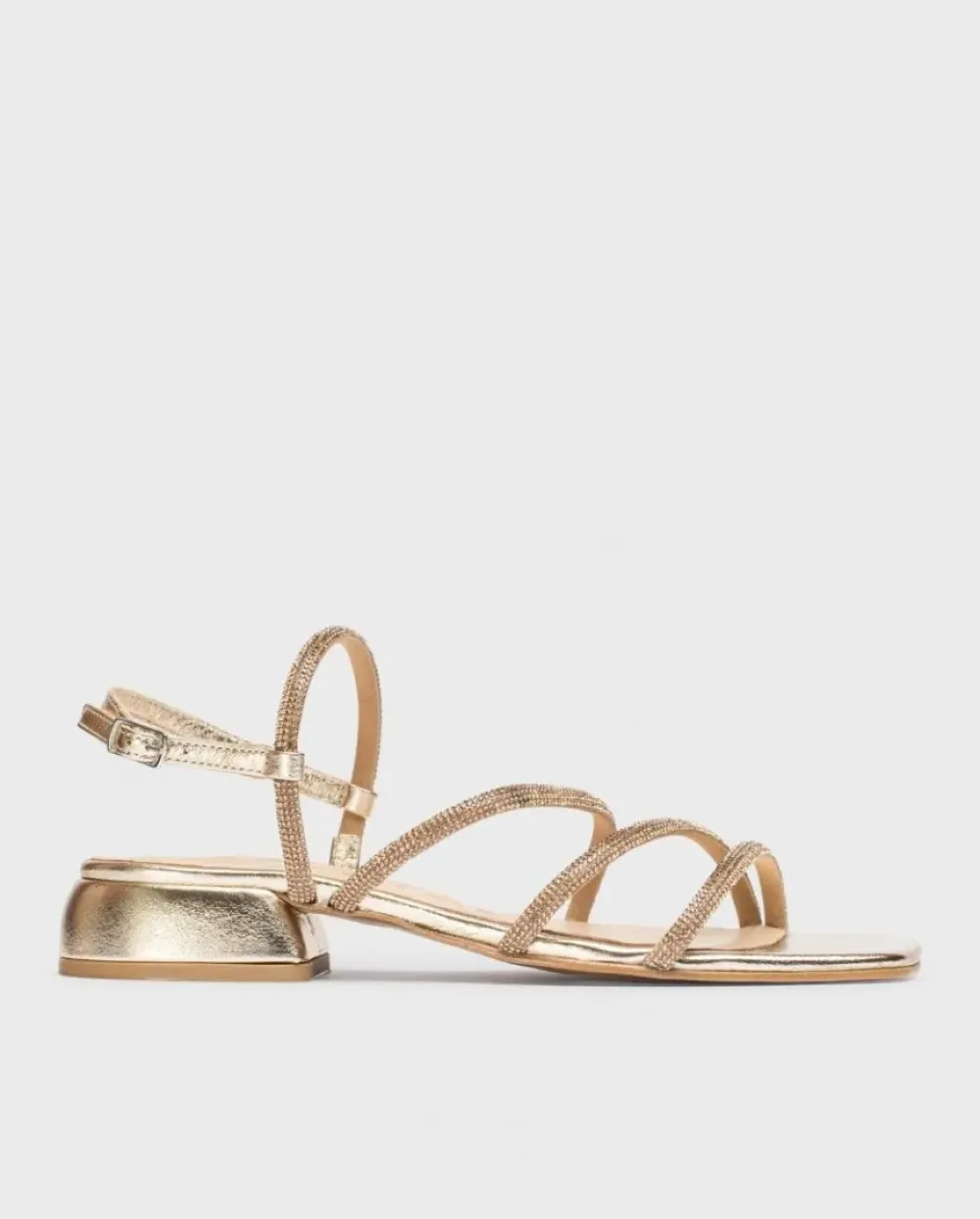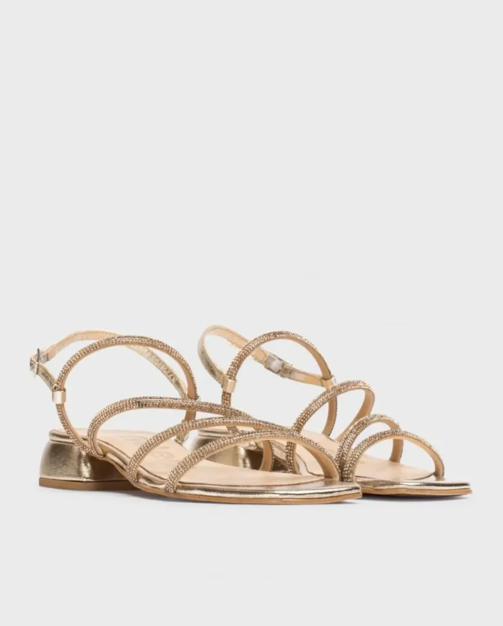 Sandalia Plana Platino. El Modelo Zaida Se Ajusta Al Pie Gracias A Sus Tiras Con Brillantes En Negro, A Aportan Elegancia Y Comocidad. Tiene Un Tacón De 1 Cm Y Una Sujección Perfecta Gracias A Una Hebilla Que Rodea El Tobillo. Disfruta De Comodidad Garantizada Gracias A La Plantilla Memorygel. ¡Consigue Los Tuyos Y Camina Con Estilo Y Confort En Cada Paso!