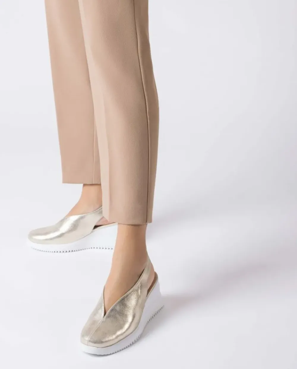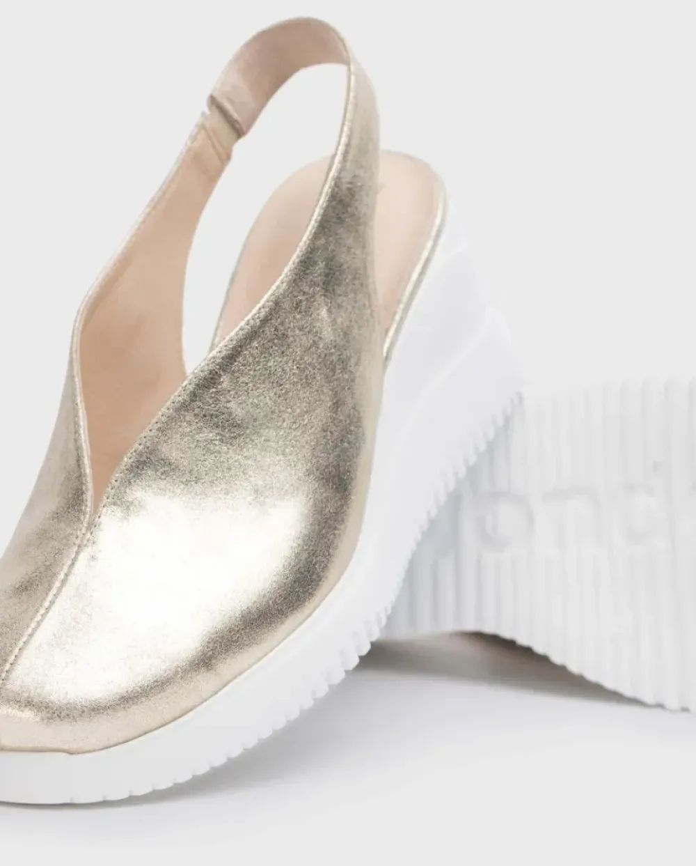 Zapato Cuña Walter De Piel En Color Dorado. Un Modelo Tendencia Con Detalle De Escote En V Y Parte Trasera Destalonada. Se Alzan Sobre Una Cuña Que Ofrece Una Elevación Considerable Ayudando A Estilizar La Silueta. Cierre Con Tira Elástica Para Mejor Calce. Suela Desarrollada Con Tecnología Wondersfly ™ Garantía De Ligereza Y Confort. Plantilla Extraíble. Prepárate Para La Sensación, Yes We Fly.